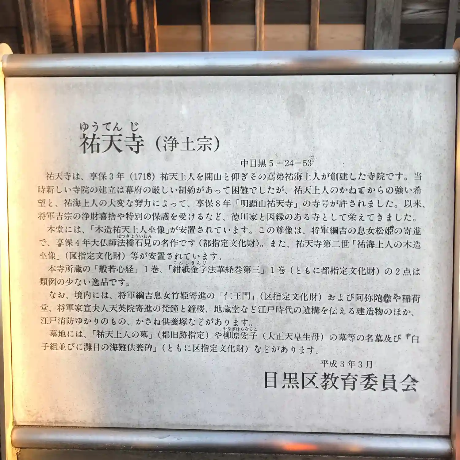目黒区指定有形文化財。