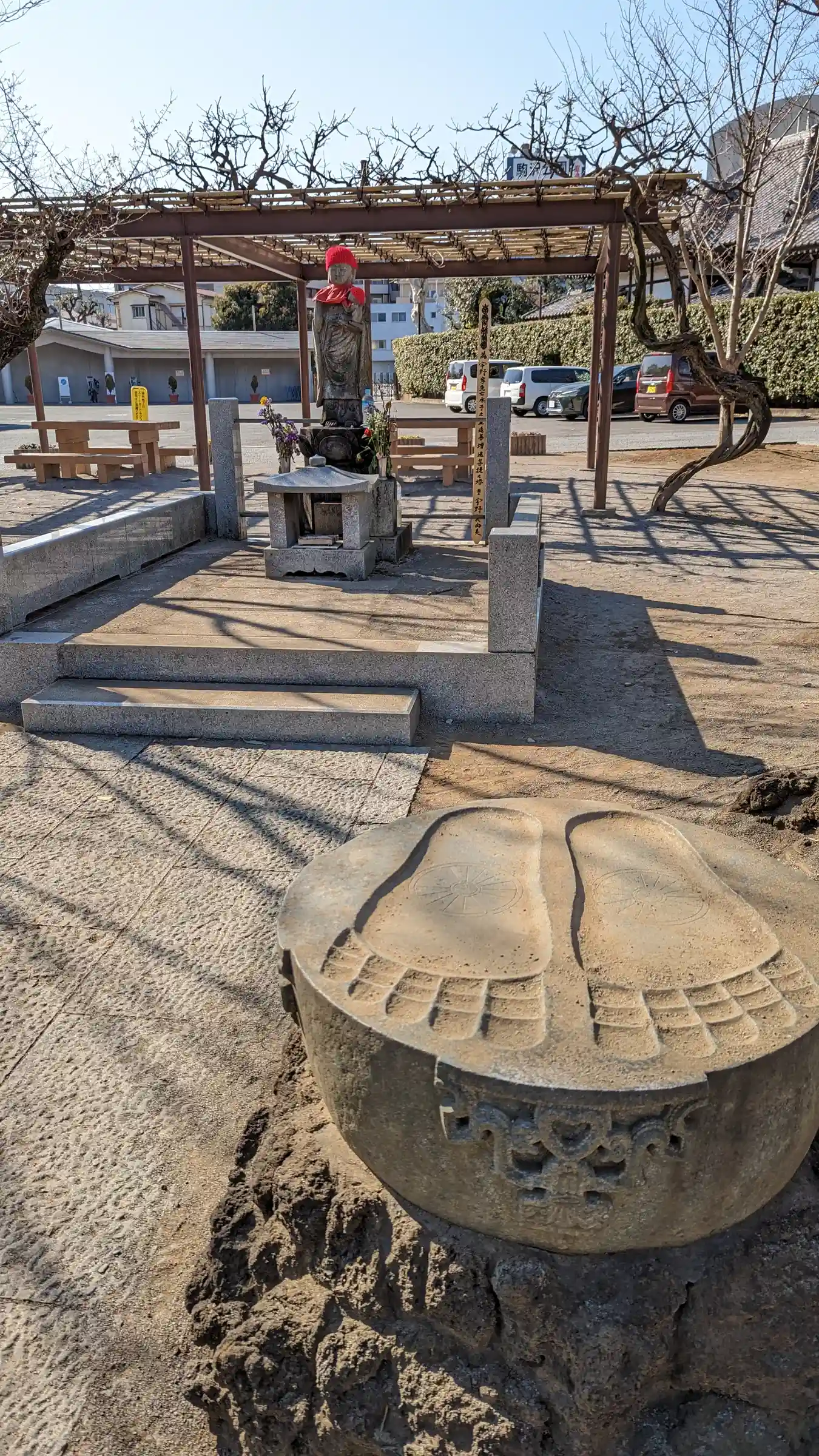 境内に駐車スペースがあります。山門の右手またはお寺左手の一方通行の道から入り、出るのは左手の道から…