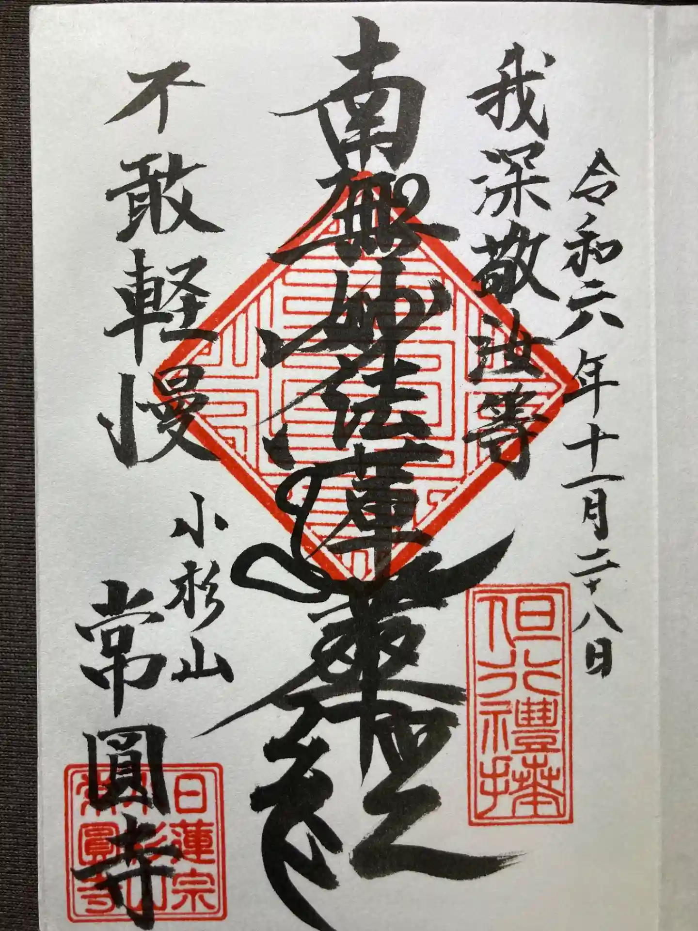 直書きの御首題を拝受しました。