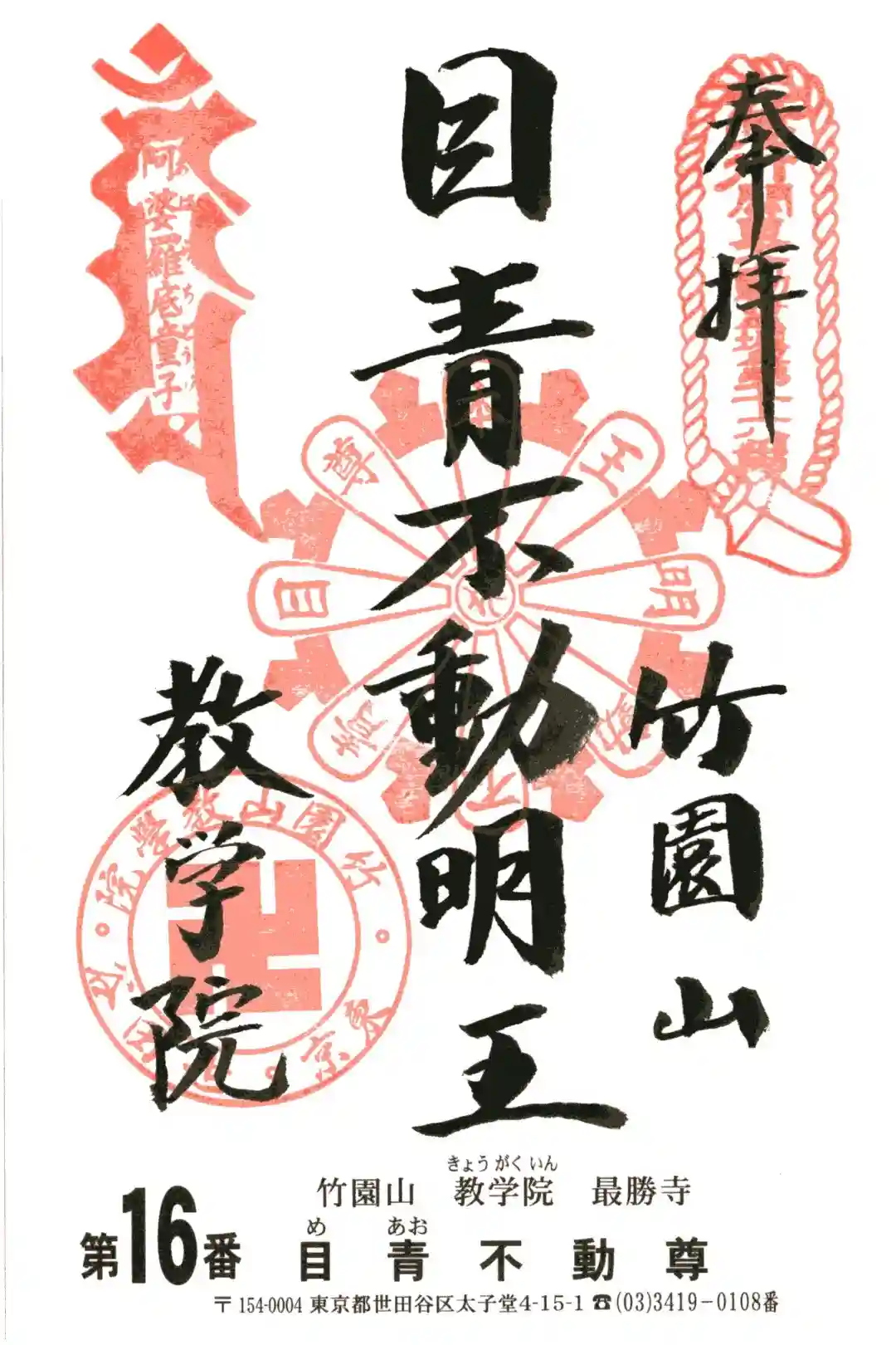 教学院の目青不動明王さまの御朱印