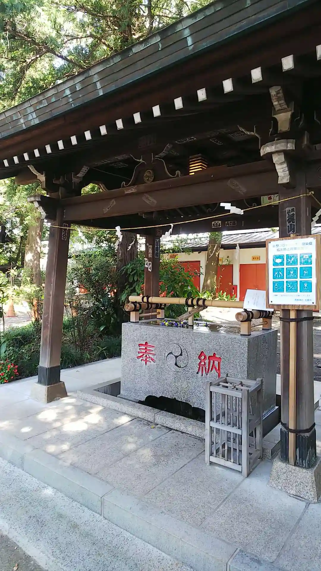 手水舎の近くには御神木のけやき