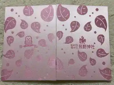真ん中に熊野神社と書かれ、右上に「寿」の文字と鳥の印、上部真ん中に「自由が丘 緑が丘」の文字、右に敬老の文字、真ん中に御神木と八咫烏のイラストが入った谷畑鎮守熊野神社の印、下部真ん中に植物の印、左下に秋薔薇の印が押されています。