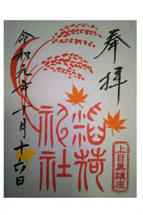目黒区大橋にある村社の神社。主祭神は素盞嗚尊・天照皇神・菅原道真。創建は天正年間(1573-1592)。例祭は8月第4土・日曜に行われている。