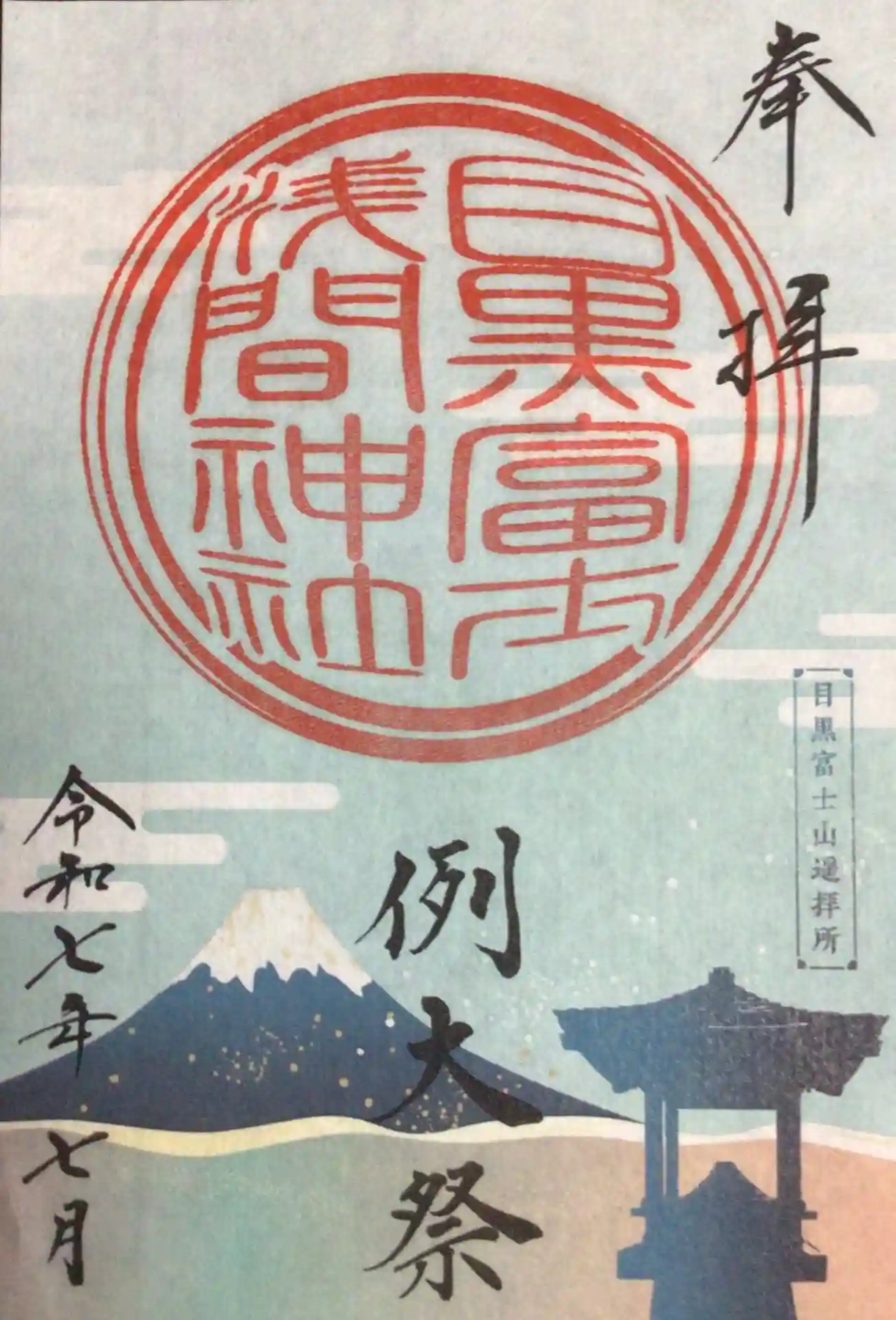 今日まで頒布の目黒富士浅間神社例大祭御朱印頂きました(書き置きのみ)