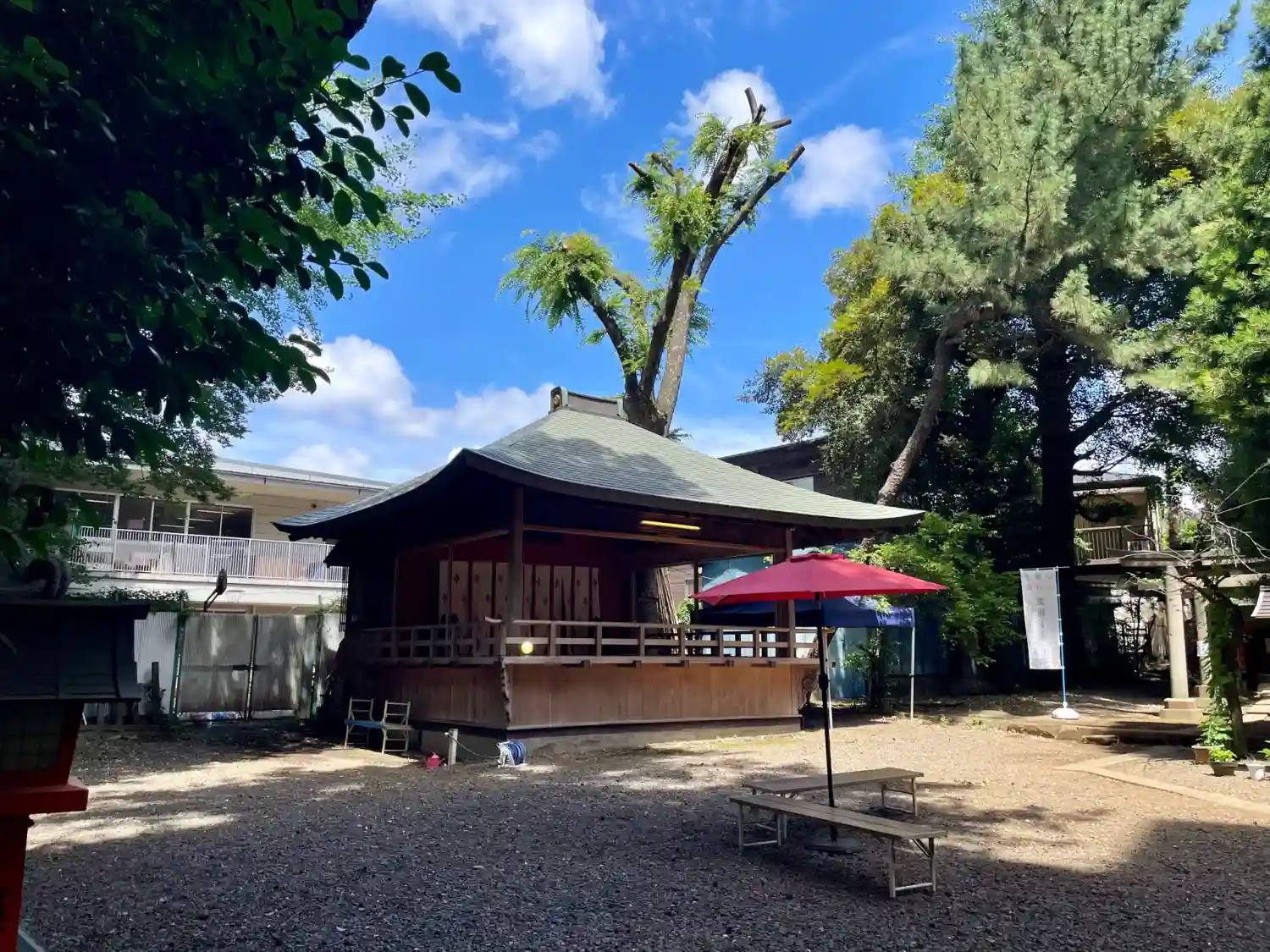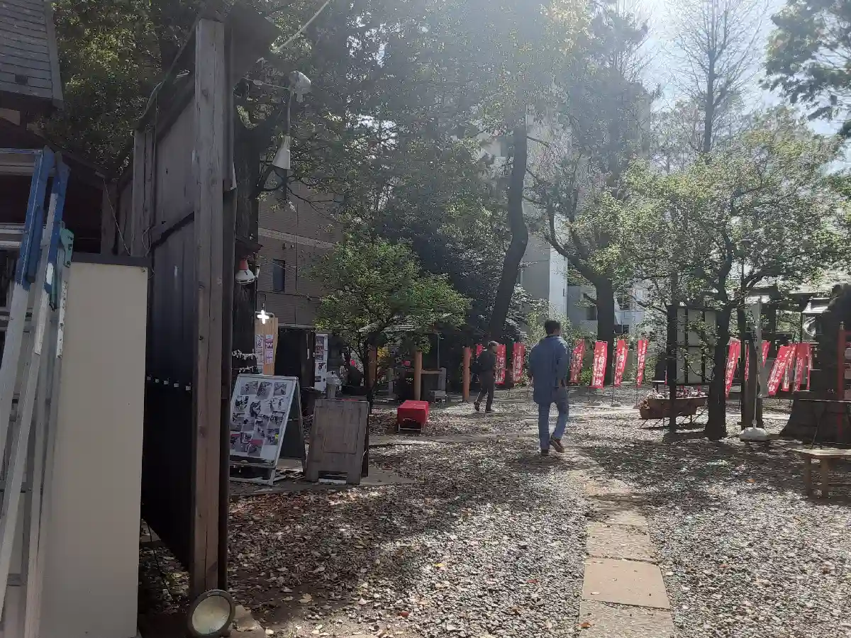 境内で、色々準備されていました。屋台や御神輿はありません…