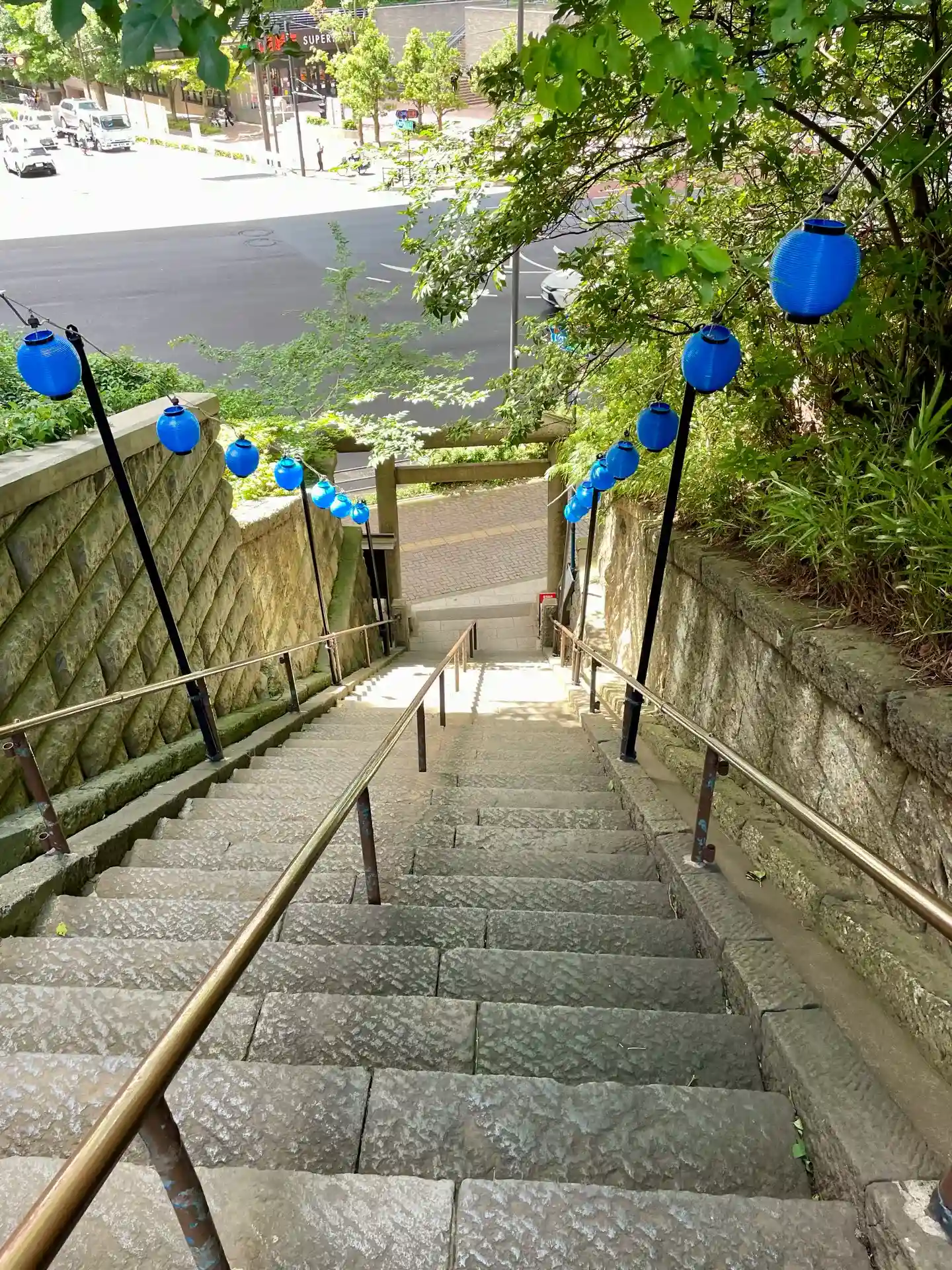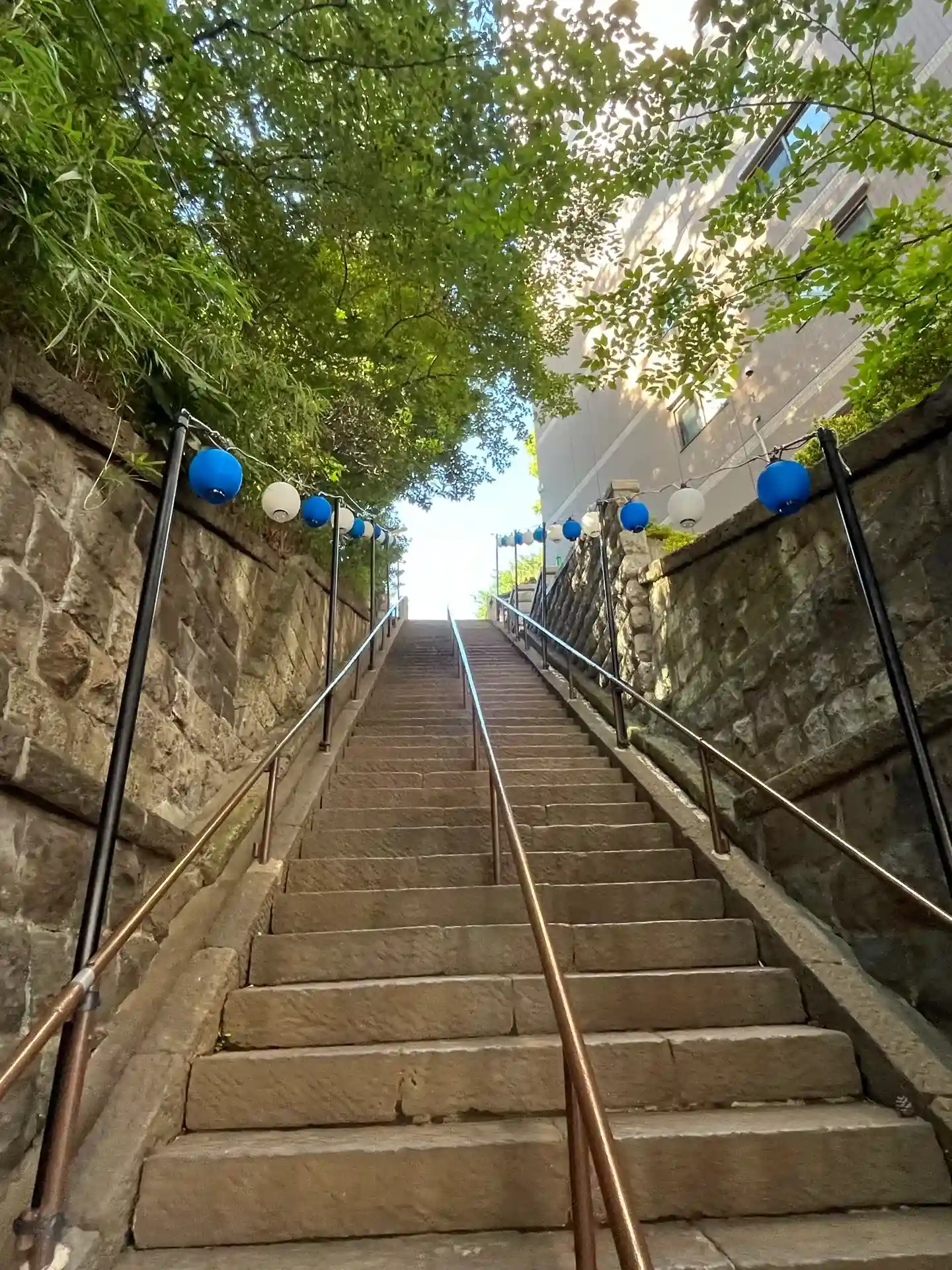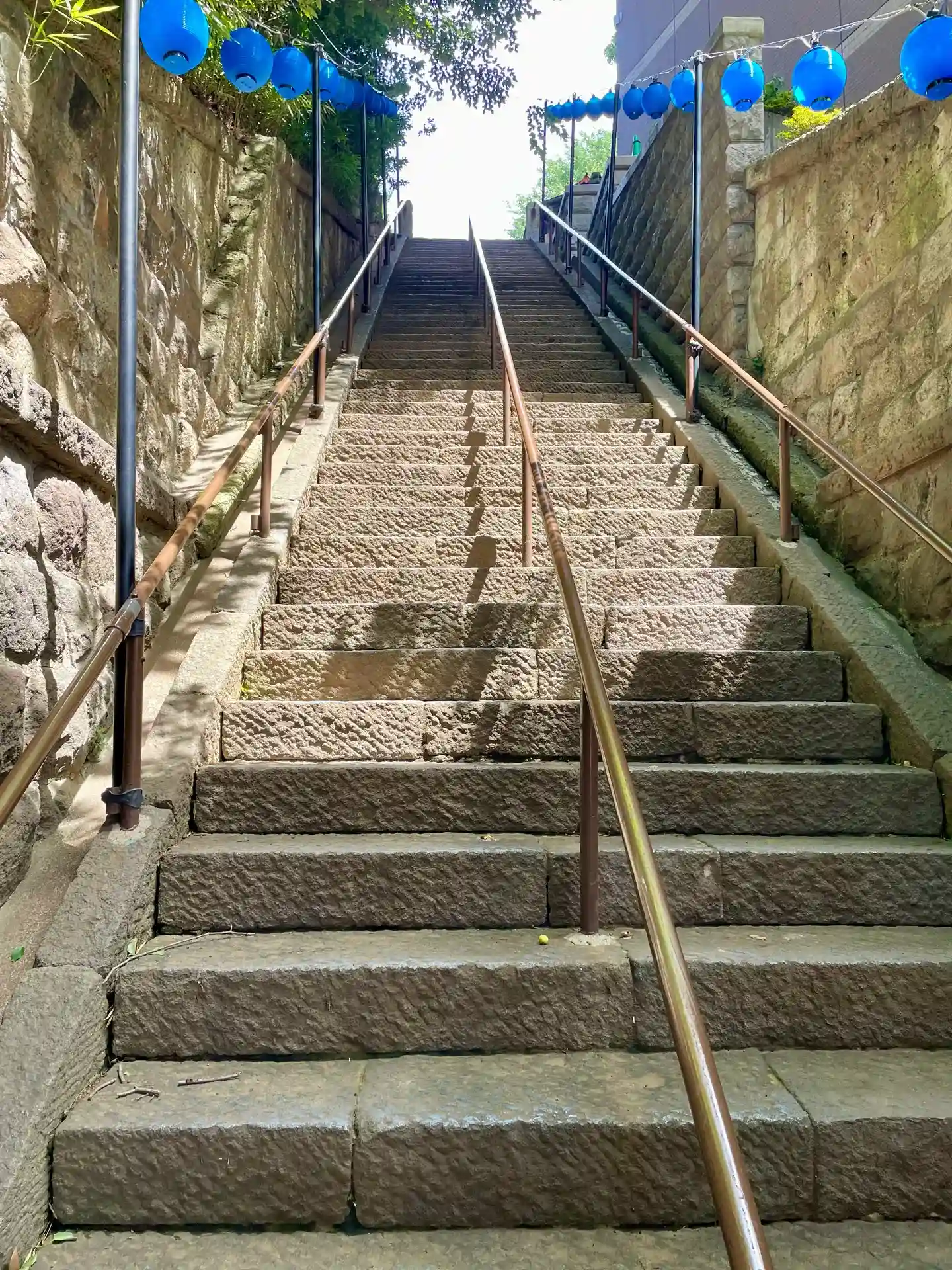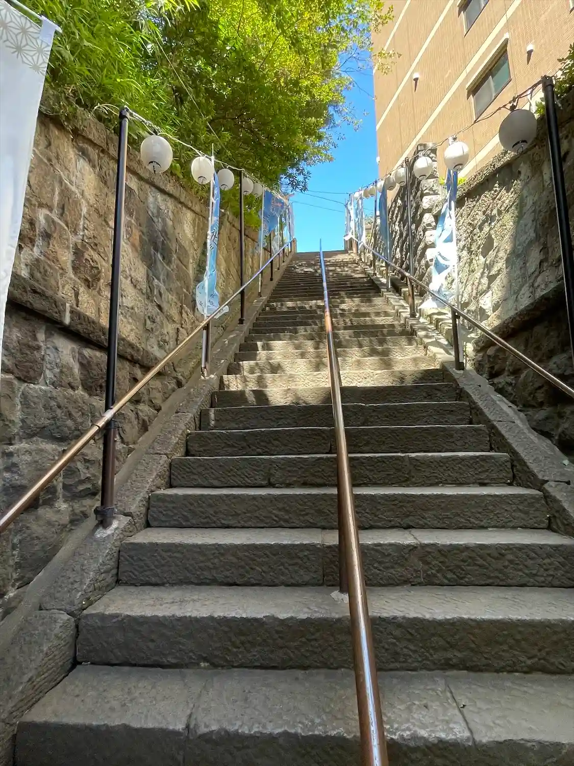 急勾配の階段です。昔は緩やかな階段でしたが、大きな通りが開通したことで階段が急になったんだそうです。
