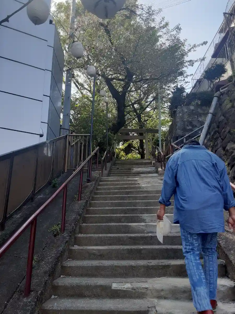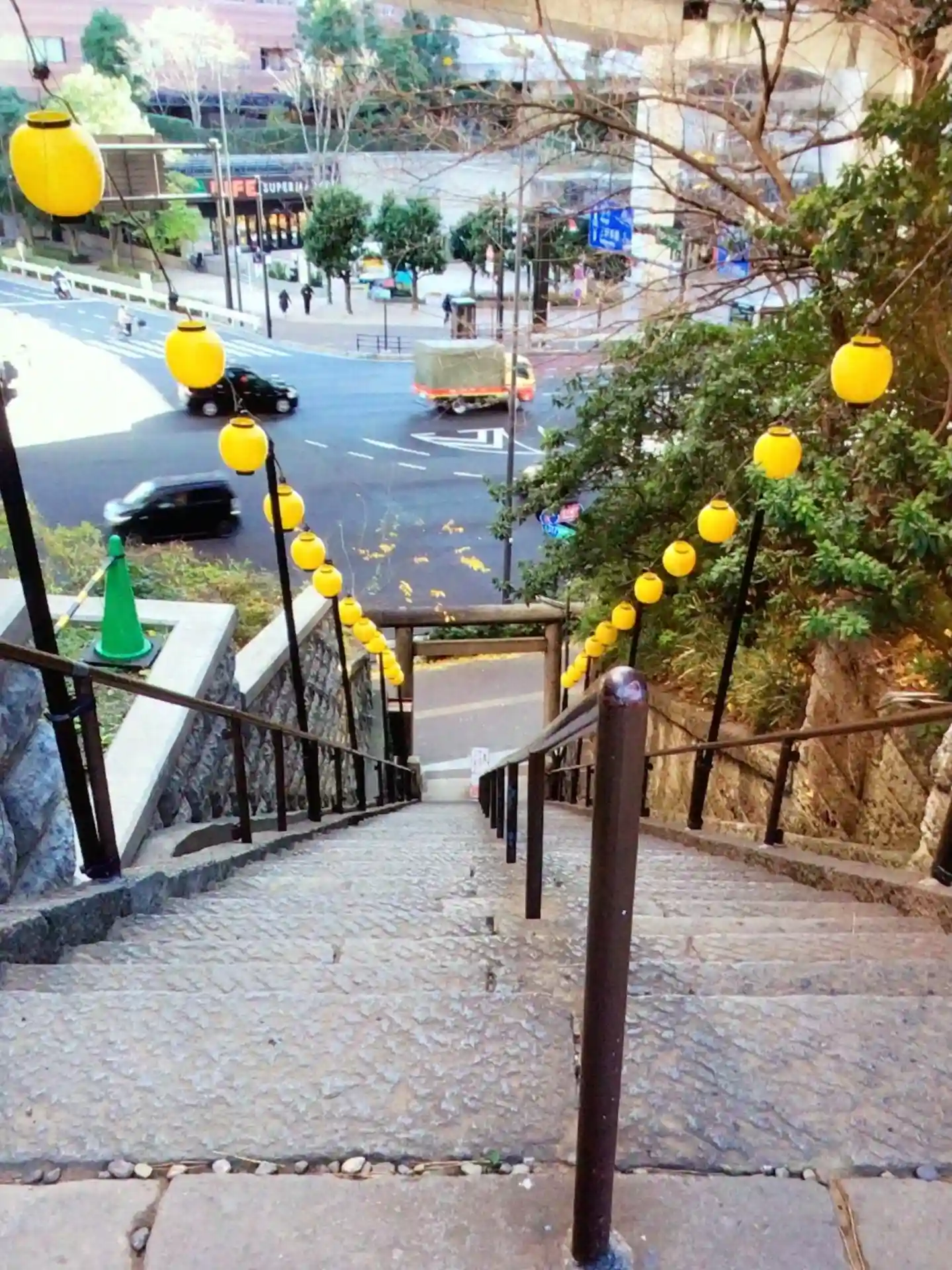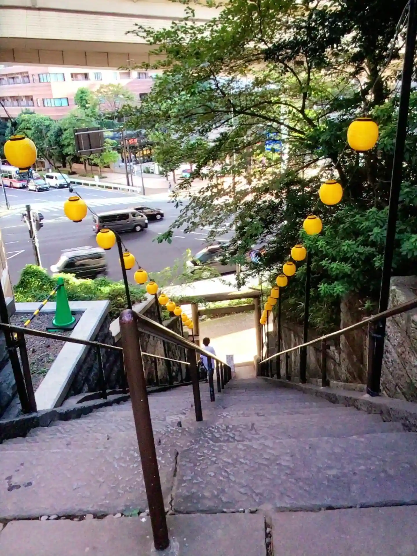 急勾配の階段です。昔は緩やかな階段でしたが、大きな通りが開通したことで階段が急になったんだそうです。