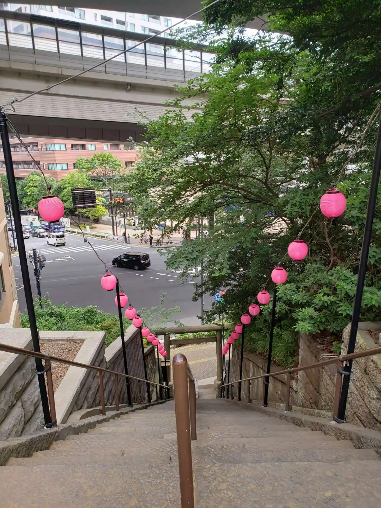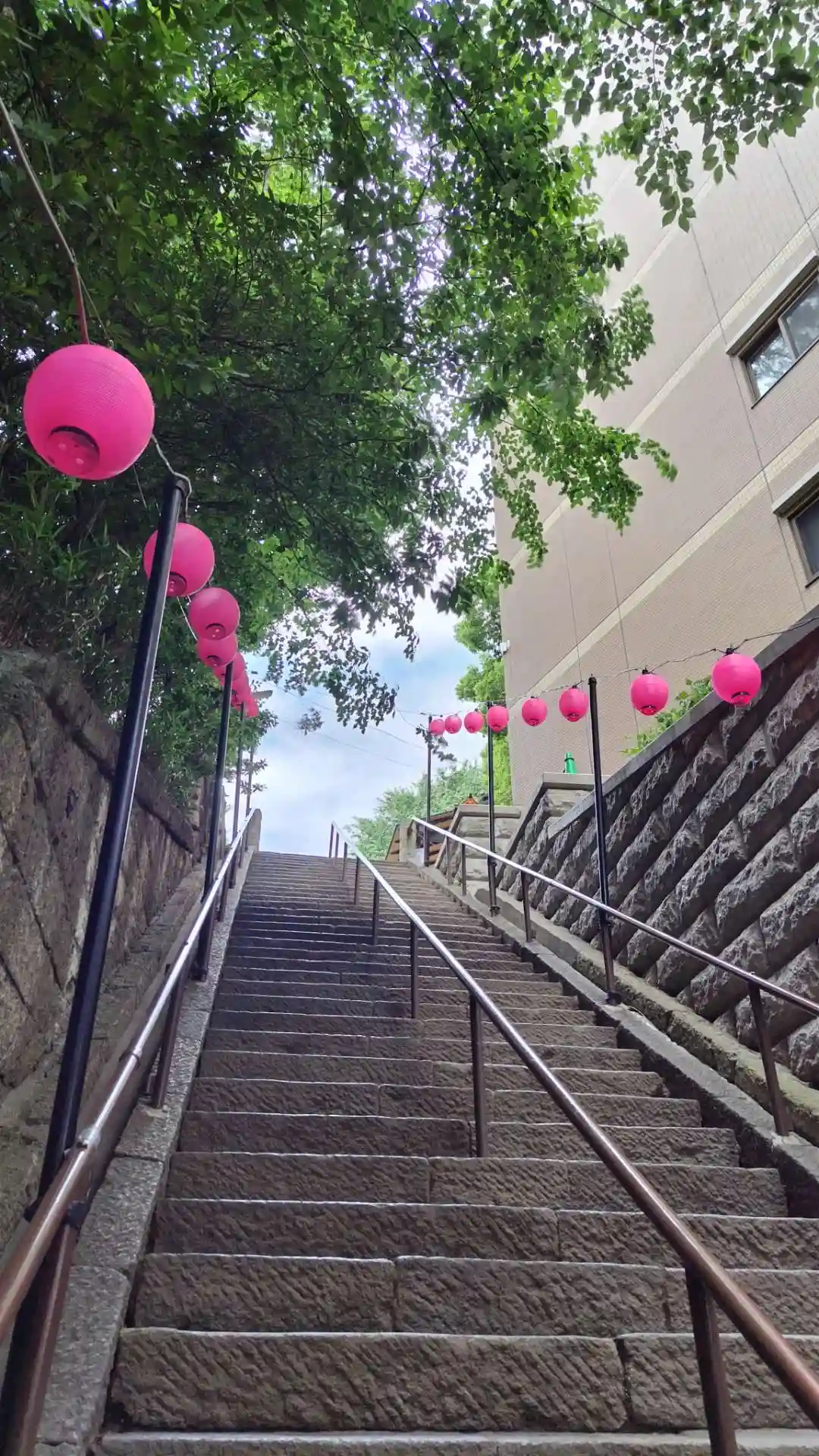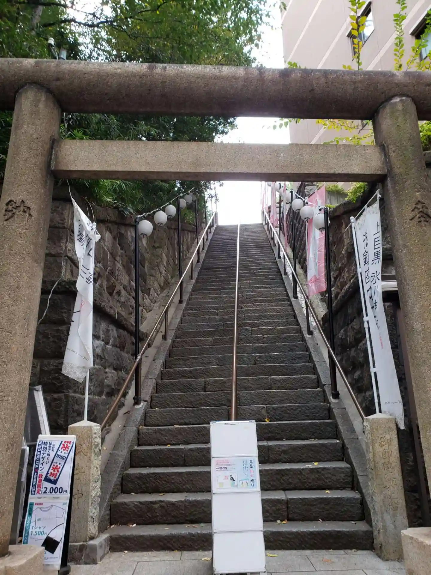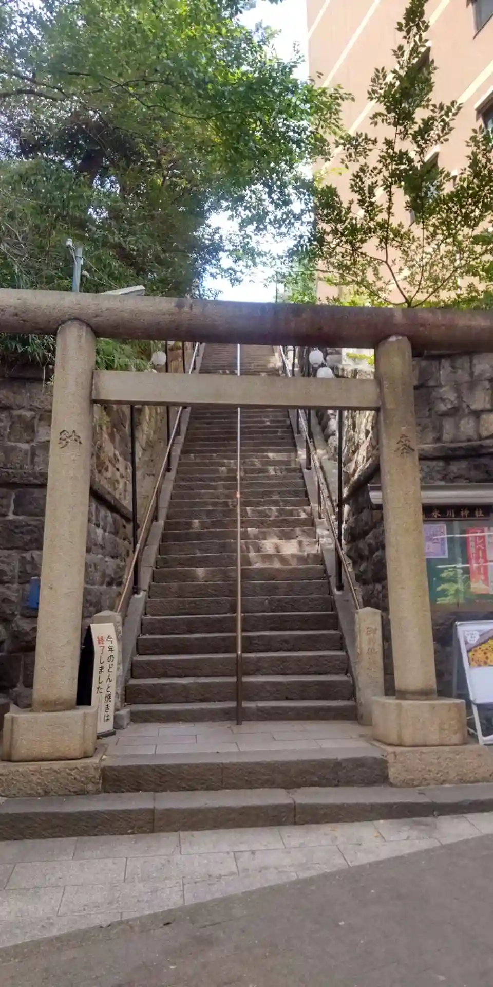 急勾配の階段です。昔は緩やかな階段でしたが、大きな通りが開通したことで階段が急になったんだそうです。