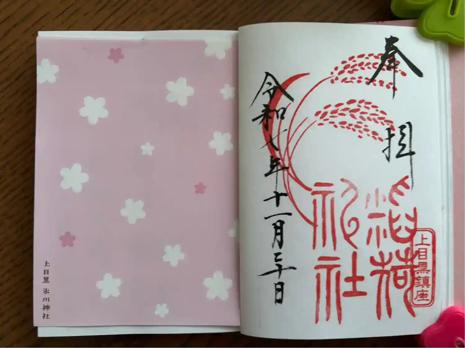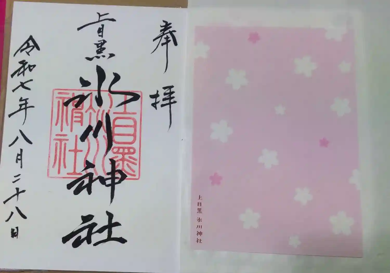 今年から氷川神社様専用の御朱印帳を作ろうと思い、上目黒氷川神社様の御朱印帳を購入しました😊