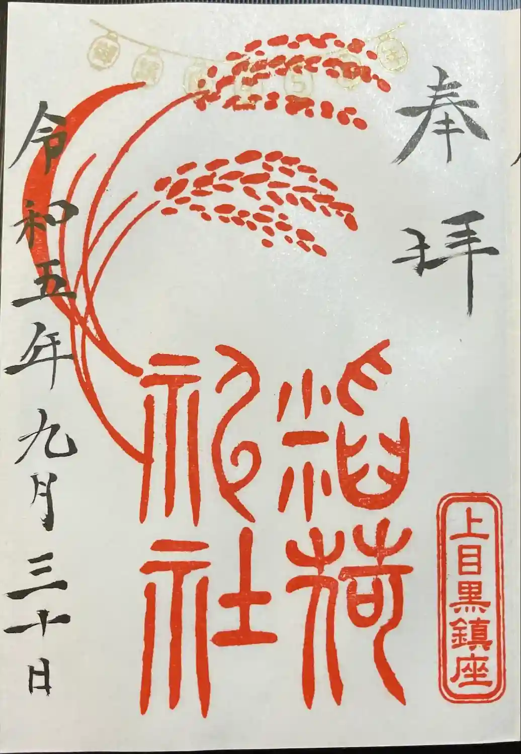 御朱印 稲荷神社(書置。初穂料500)
