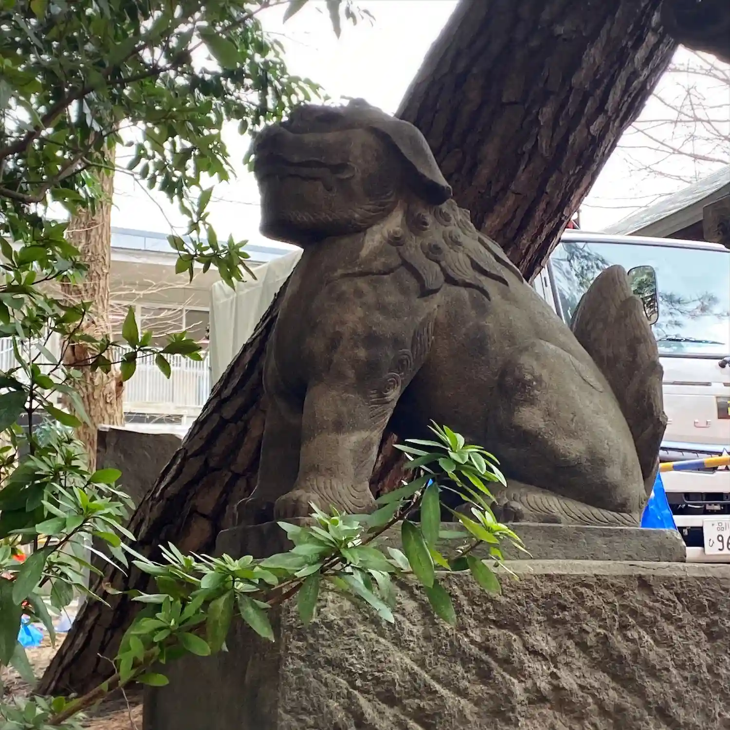 拝殿横の狛犬サン