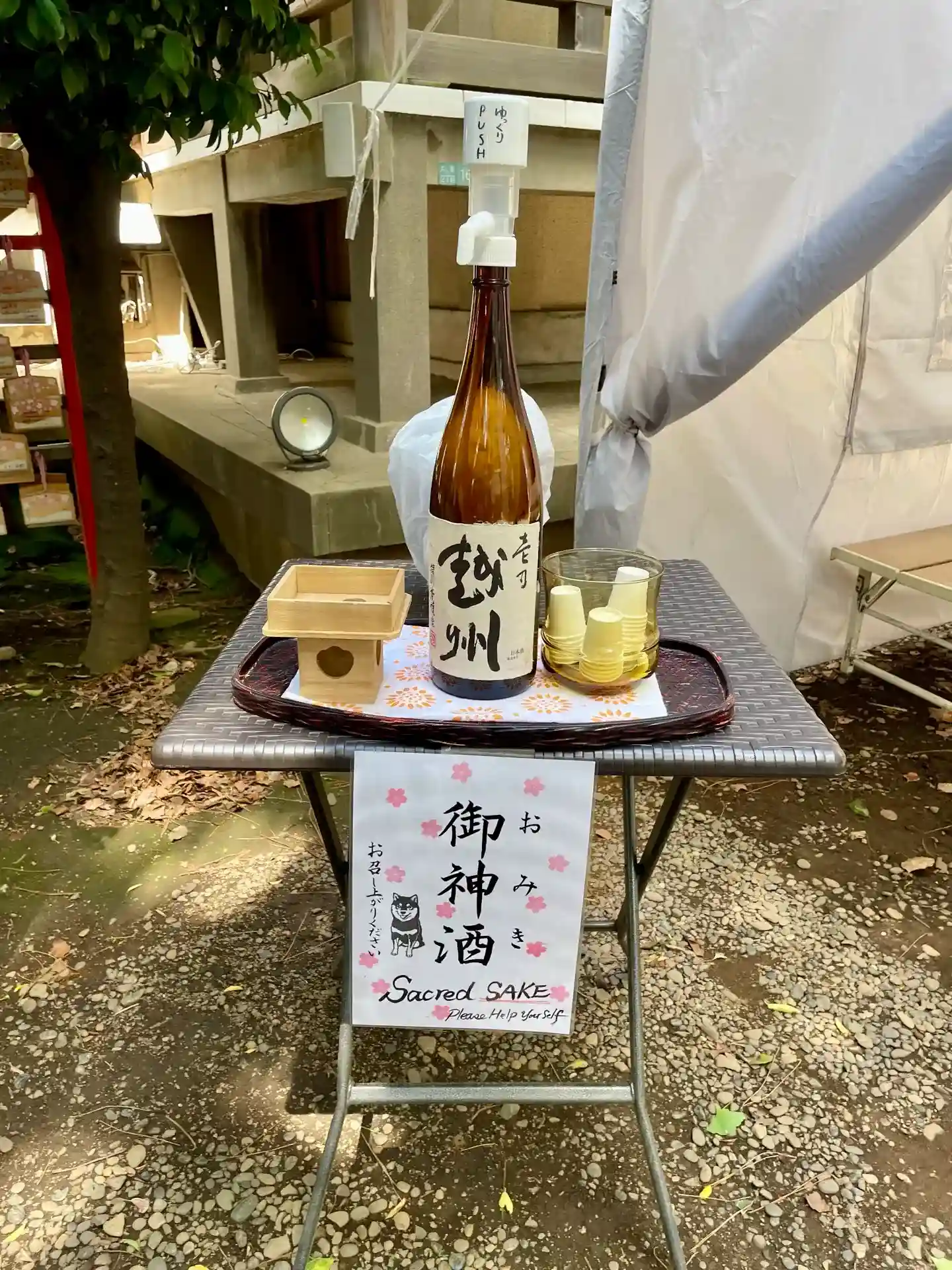 社務所の前にいます😊