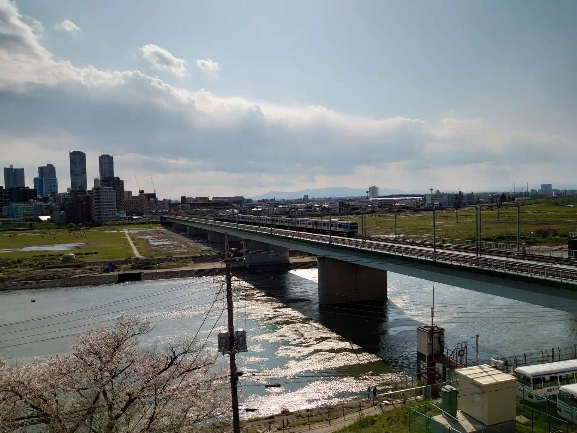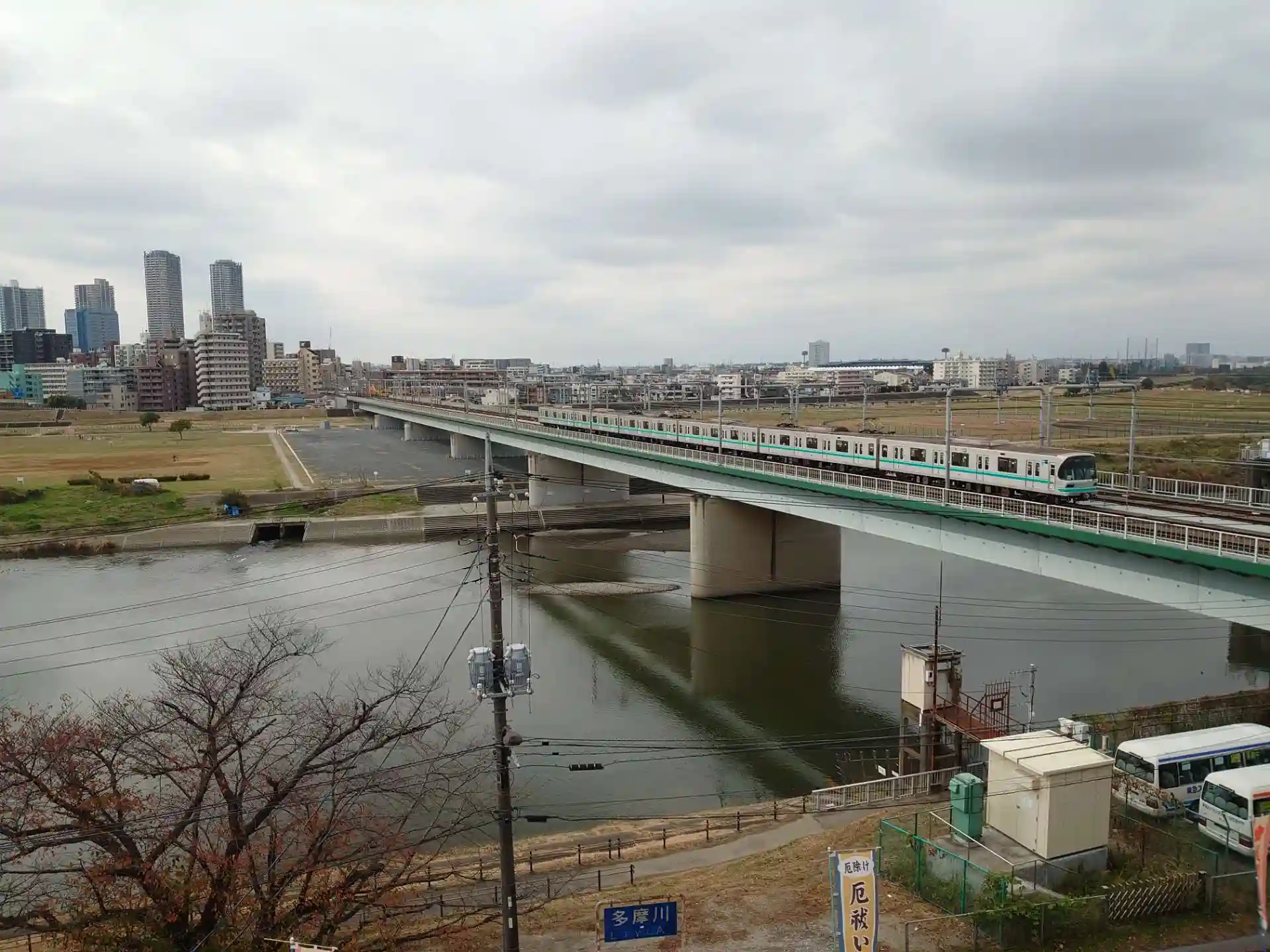 左奥の建物は武蔵小杉のタワーマンション群です
