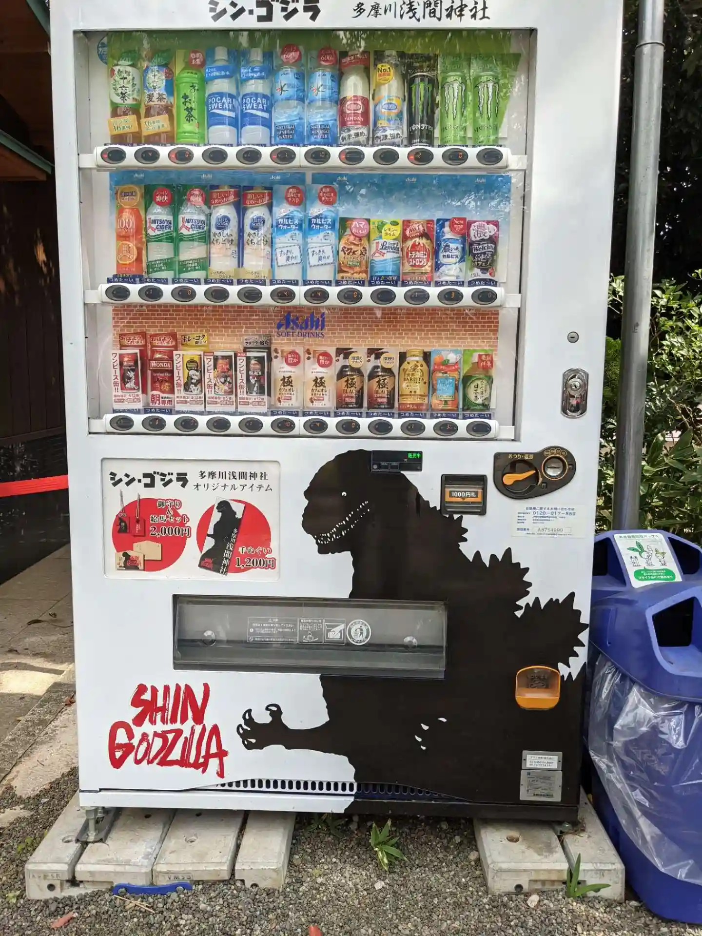 映画の舞台となったためか、シンゴジラの自販機。シンゴジラの手ぬぐい、絵馬等もあります。
