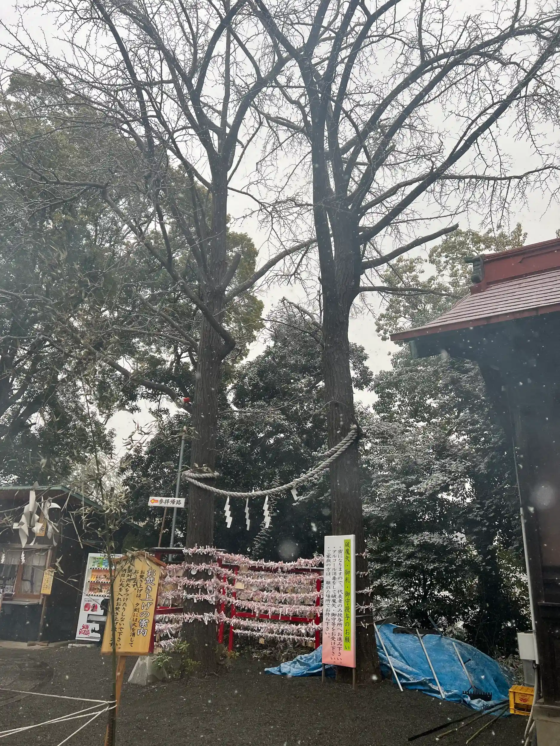 雪化粧した神社、普段とは全く印象が変わっていて良かったです。