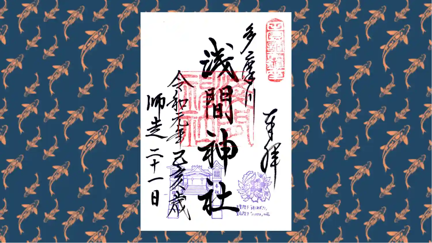 多摩川浅間神社用の御朱印帳に直接書き入れていただきたく、再訪しました。