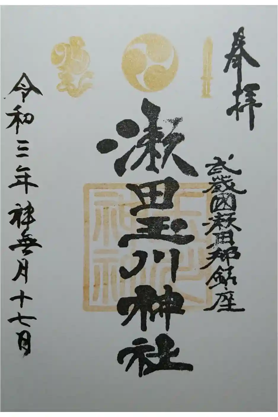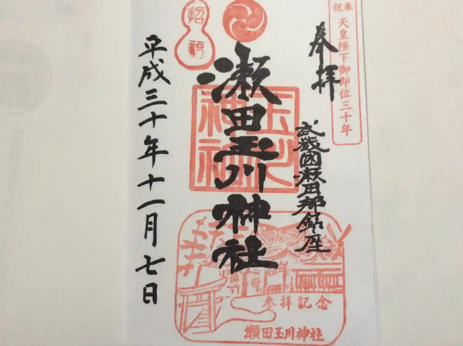 瀬田玉川神社の御朱印 写真一覧