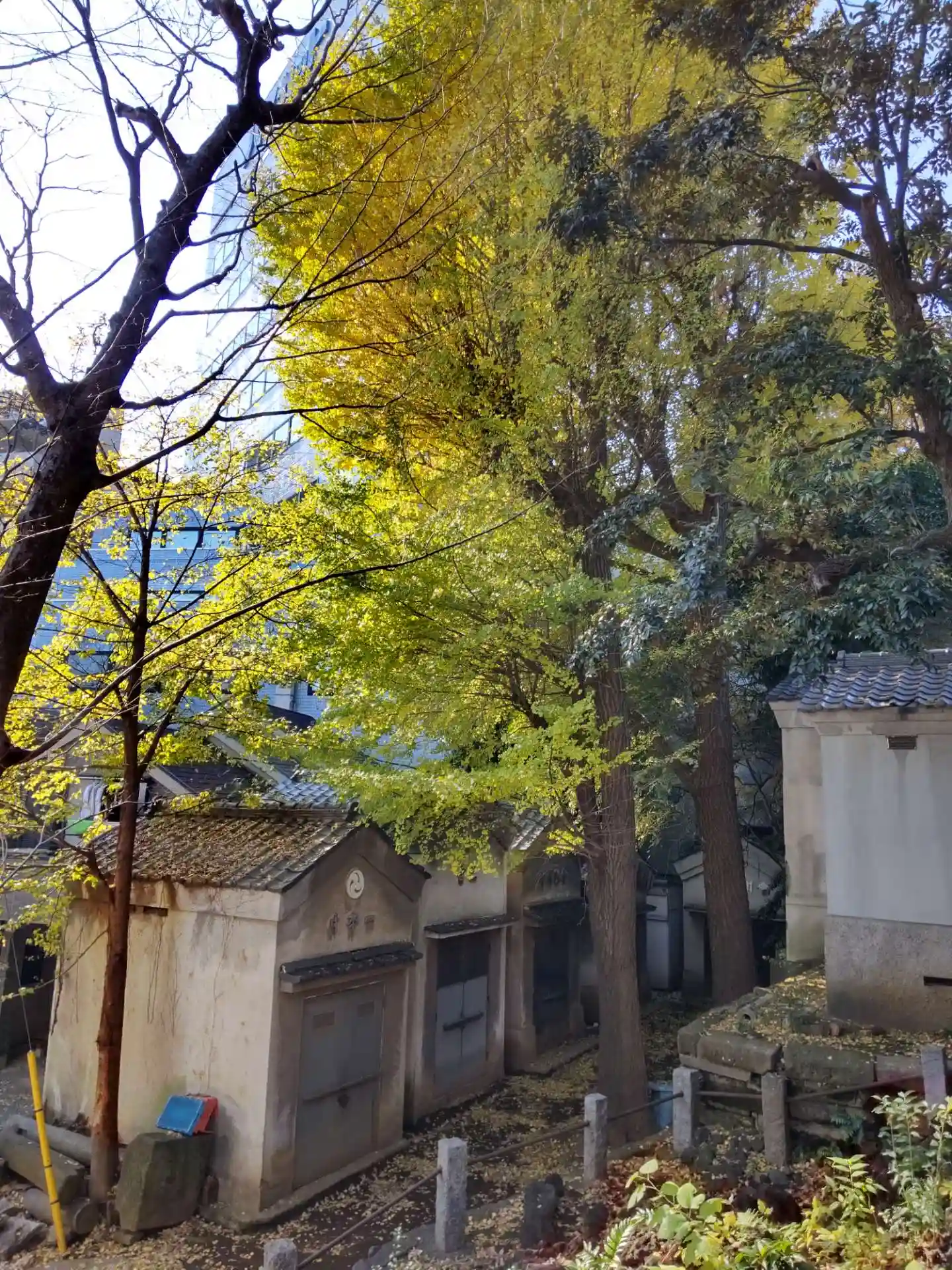 中野区を走りました。東中野の氷川神社です。朱い社殿と黄色に色づいたイチョウがコントラストとなって良いです!雰囲気のある神輿庫がたくさんあって、こちらもとても良いです!