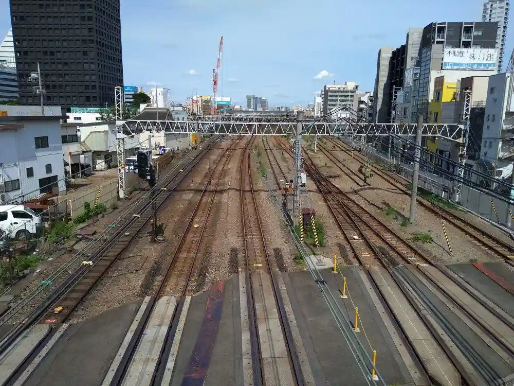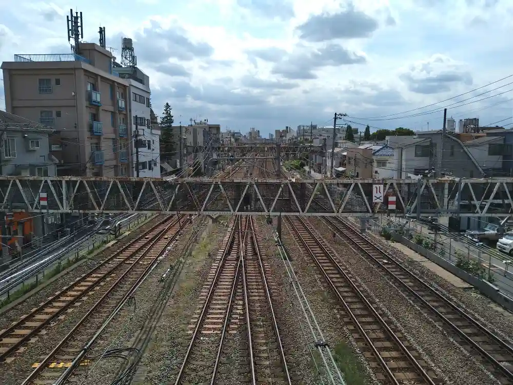 善成寺を後に、中野から高円寺に線路脇を進み、歩行者用の跨線橋を
