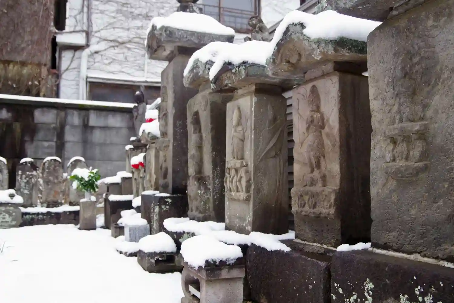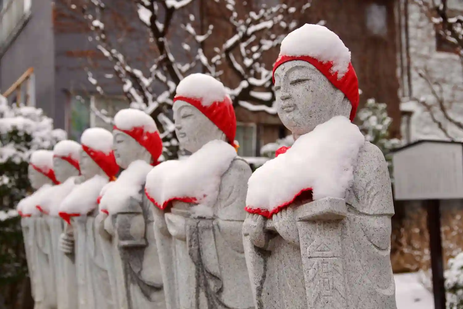 はらはらと降り積もった粉雪で、境内はすっかり銀世界に様変わりしました。