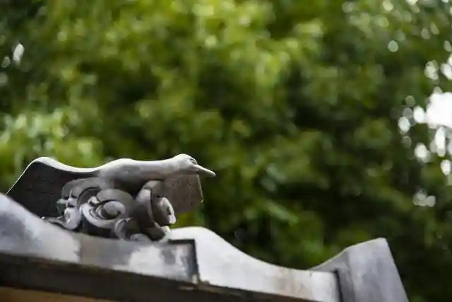 手水舎屋根には白鳥も