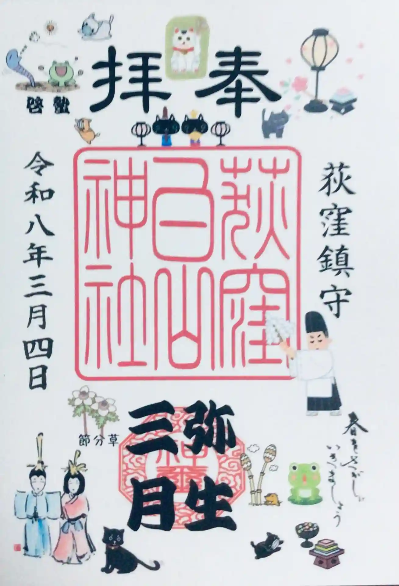 月替わりの御朱印。裏がシールのタイプです。