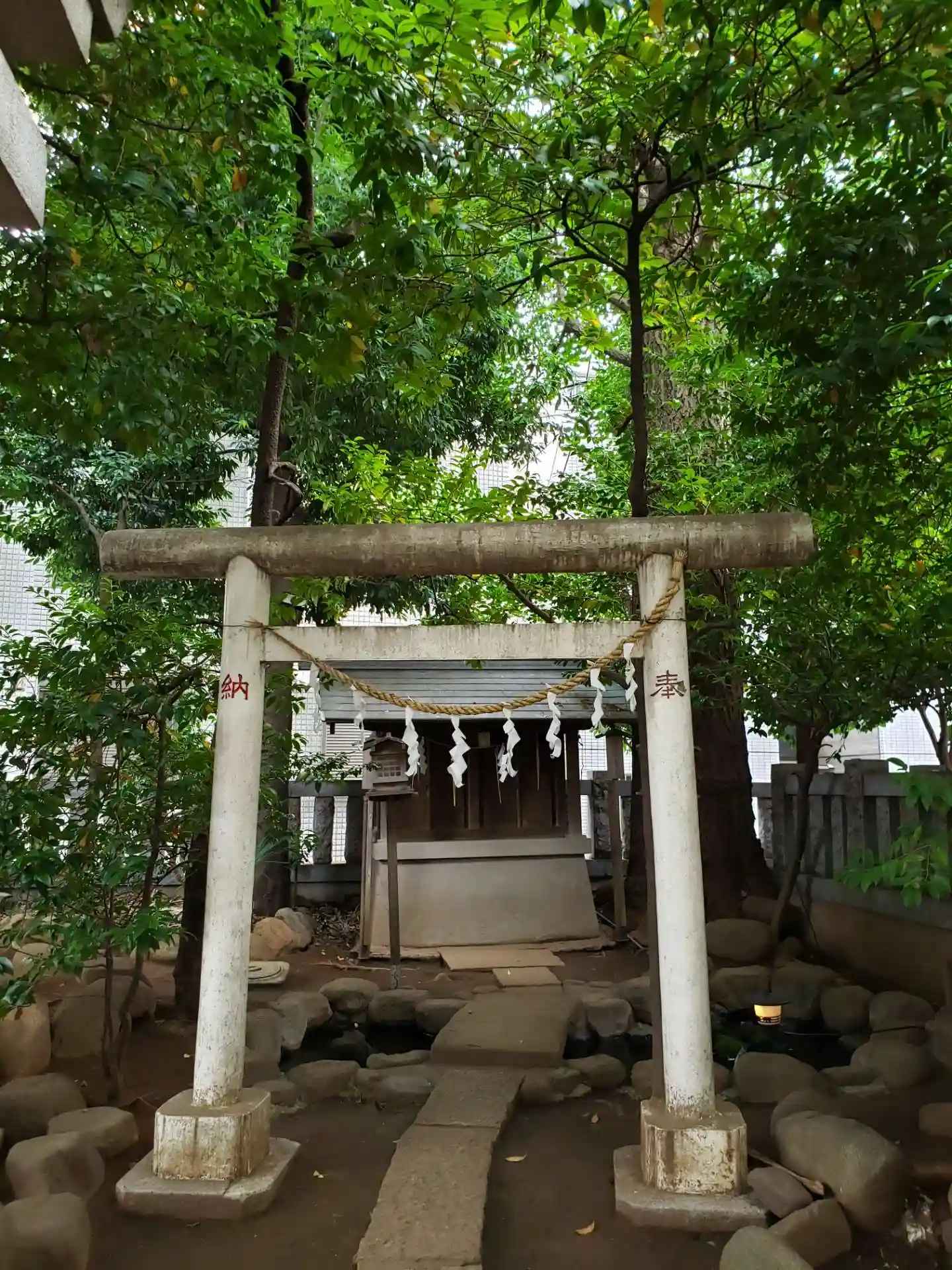 方南通りの東大教育学部付属中学からすぐ近くで、反対側に細い道を入ったところですが、方南通りからも、覗くとすぐに鳥居と緑豊かな木々が見えます。