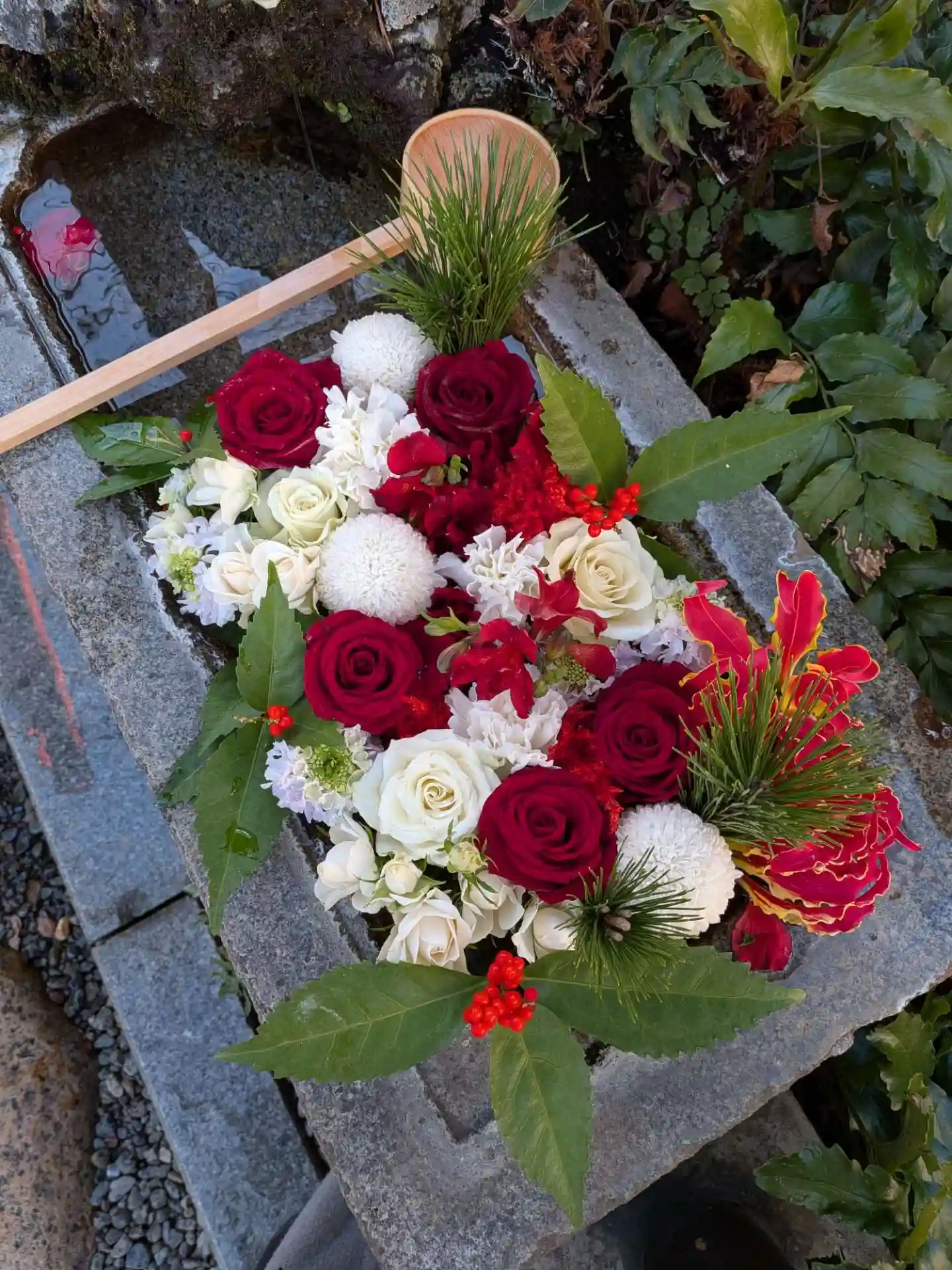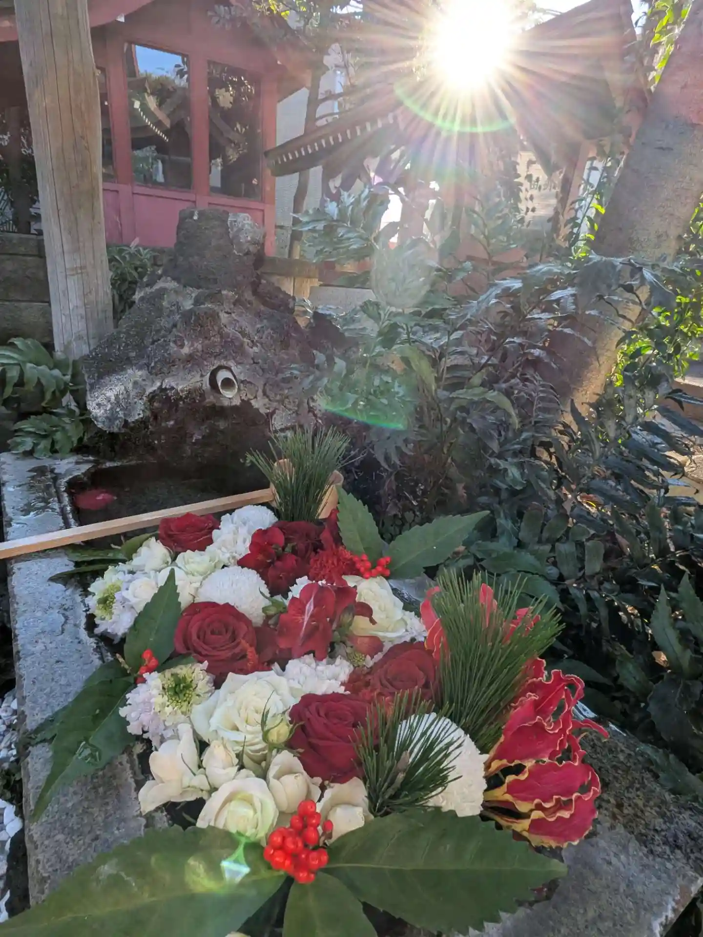 日常が戻りつつある1/5ですが、大晦日の夕方に一足先に拝見していたものの、年が変わってから新年の華やかな花手水を改めて拝見できて嬉しくなりました。