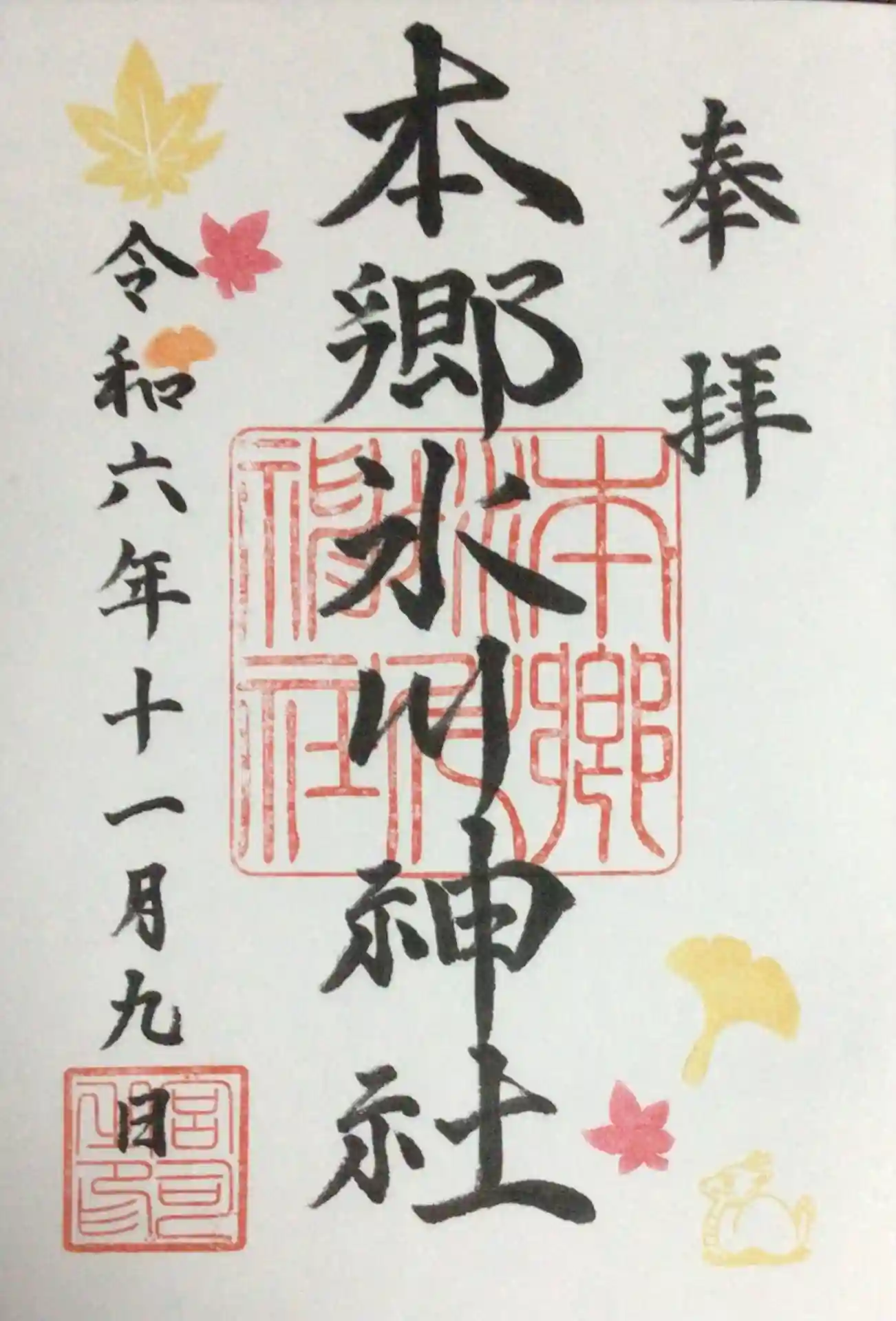 本郷氷川神社の御朱印・御朱印帳