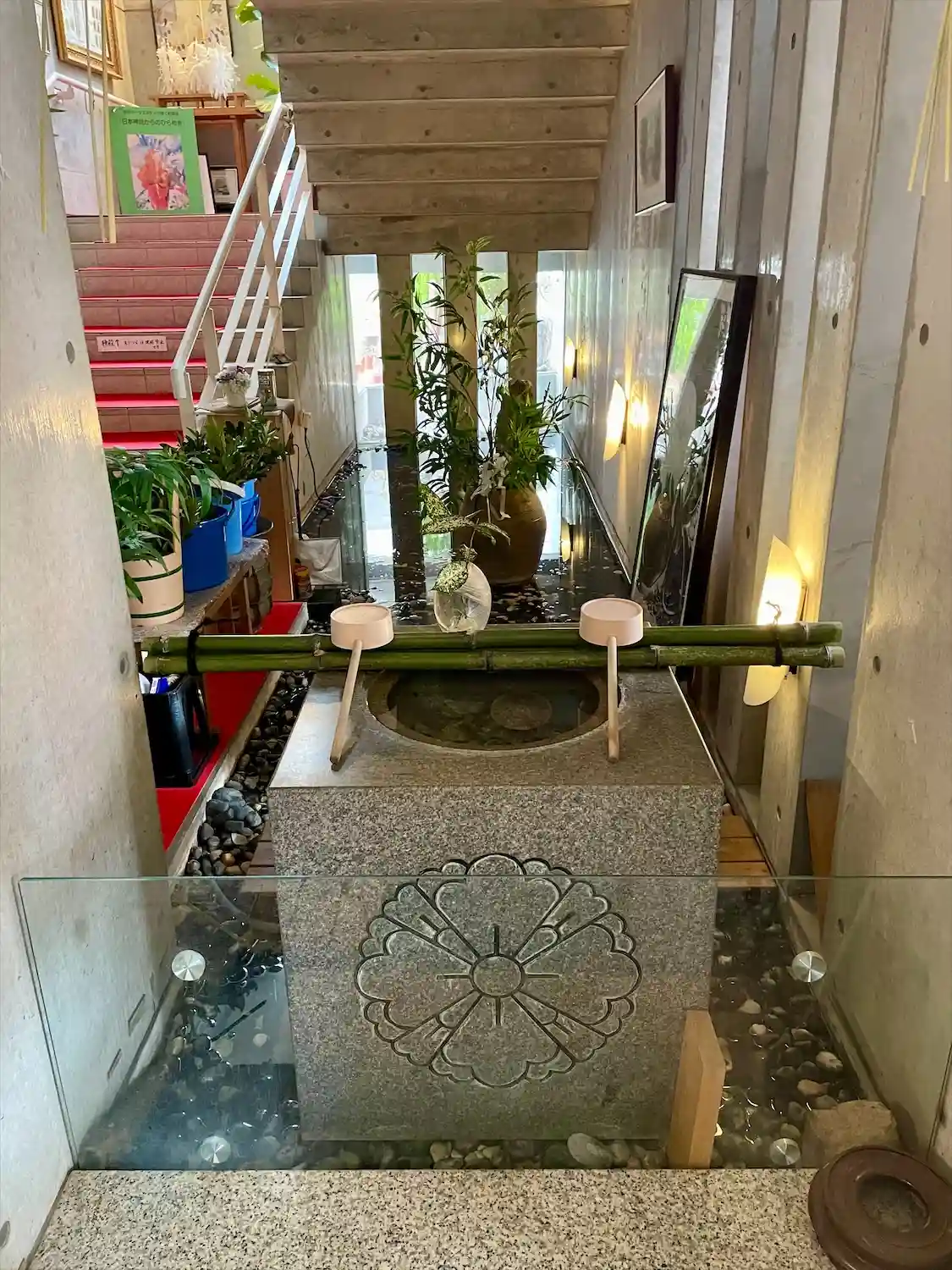 モダンなビルの中に拝殿があります。