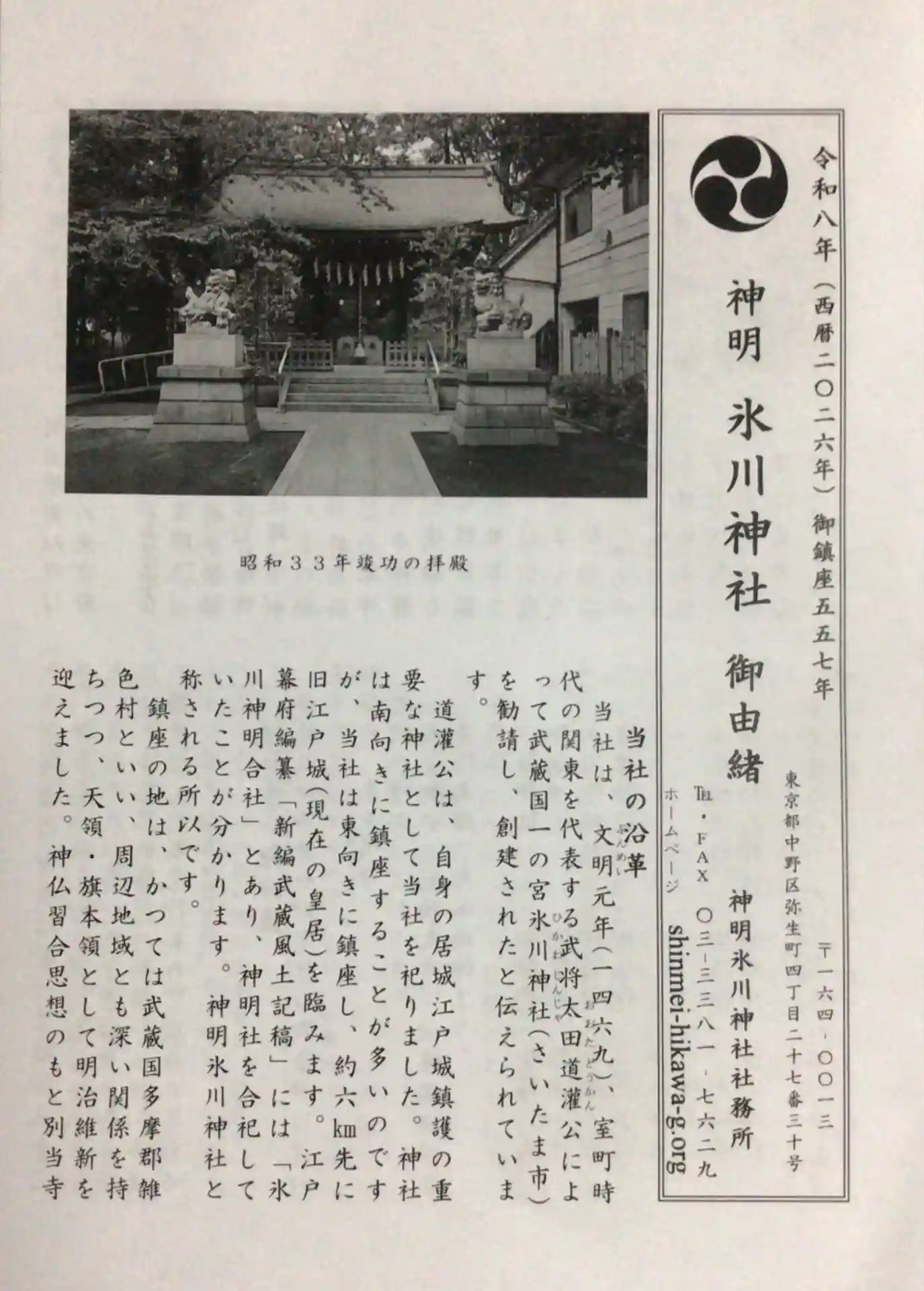 神明氷川神社さんの由緒書