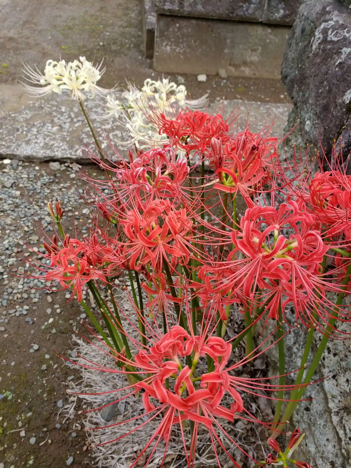 散歩しながら、よくお参りに伺っているお寺ですが、今は墓地エリアの通路にたくさんの彼岸花が咲いていています。お彼岸中は、お墓参りの方のご迷惑になるので、お彼岸に入る前に、彼岸花を楽しませて頂きました。