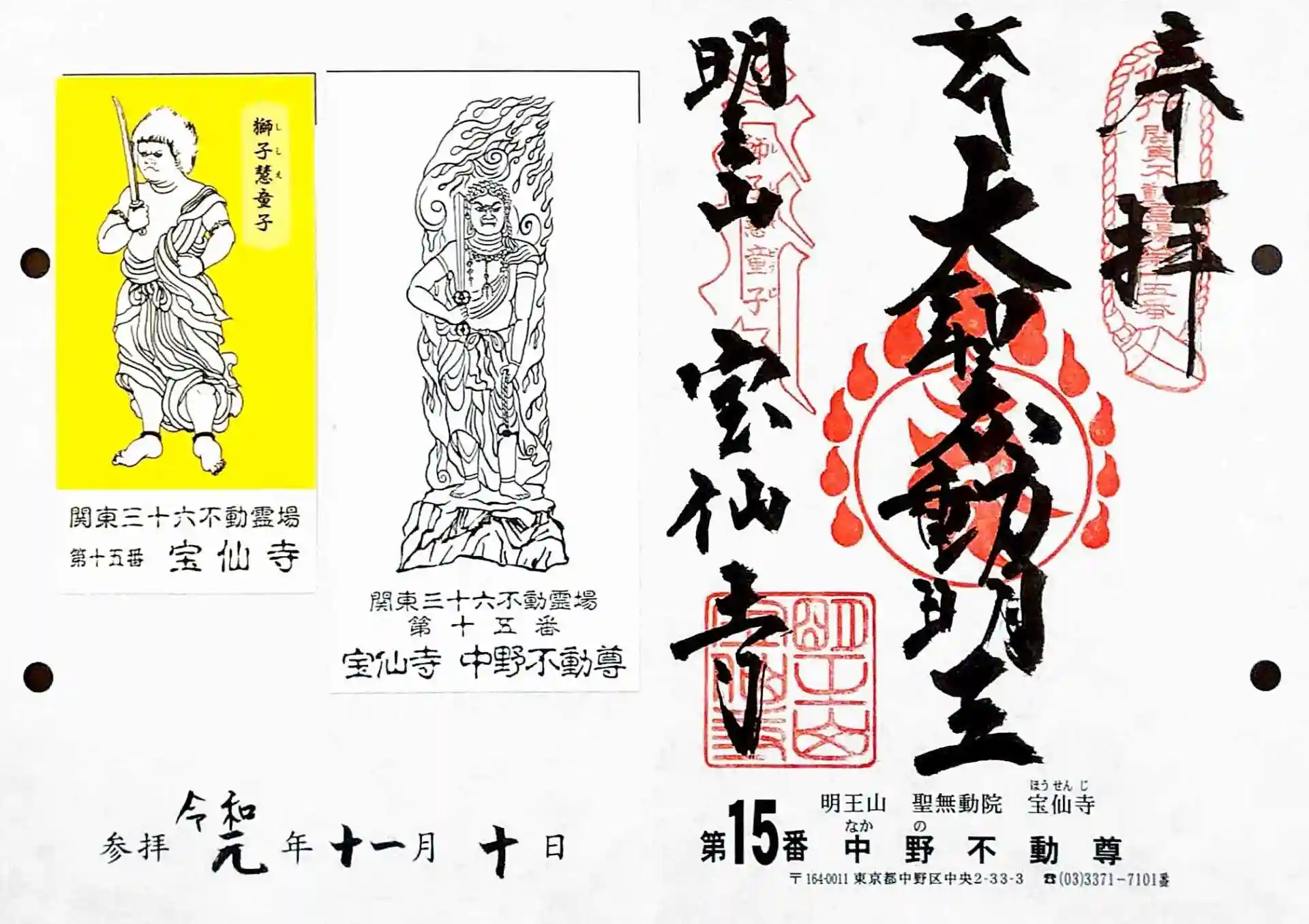 関東三十六不動15番札所、宝仙寺・中野不動尊の御朱印です。