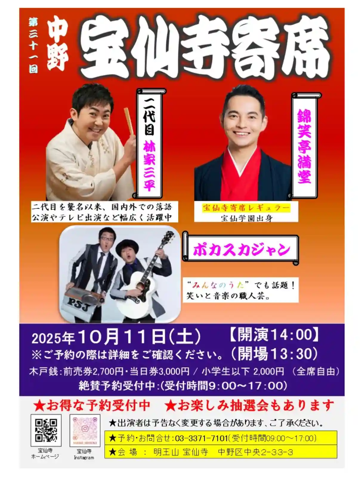 因みに、錦笑亭満堂さん(以前は三遊亭とむさん)は、宝仙寺さん併設の宝仙学園の卒園生でその時の同級生が今の宝仙寺さんの現副御住職さんとのことです😊