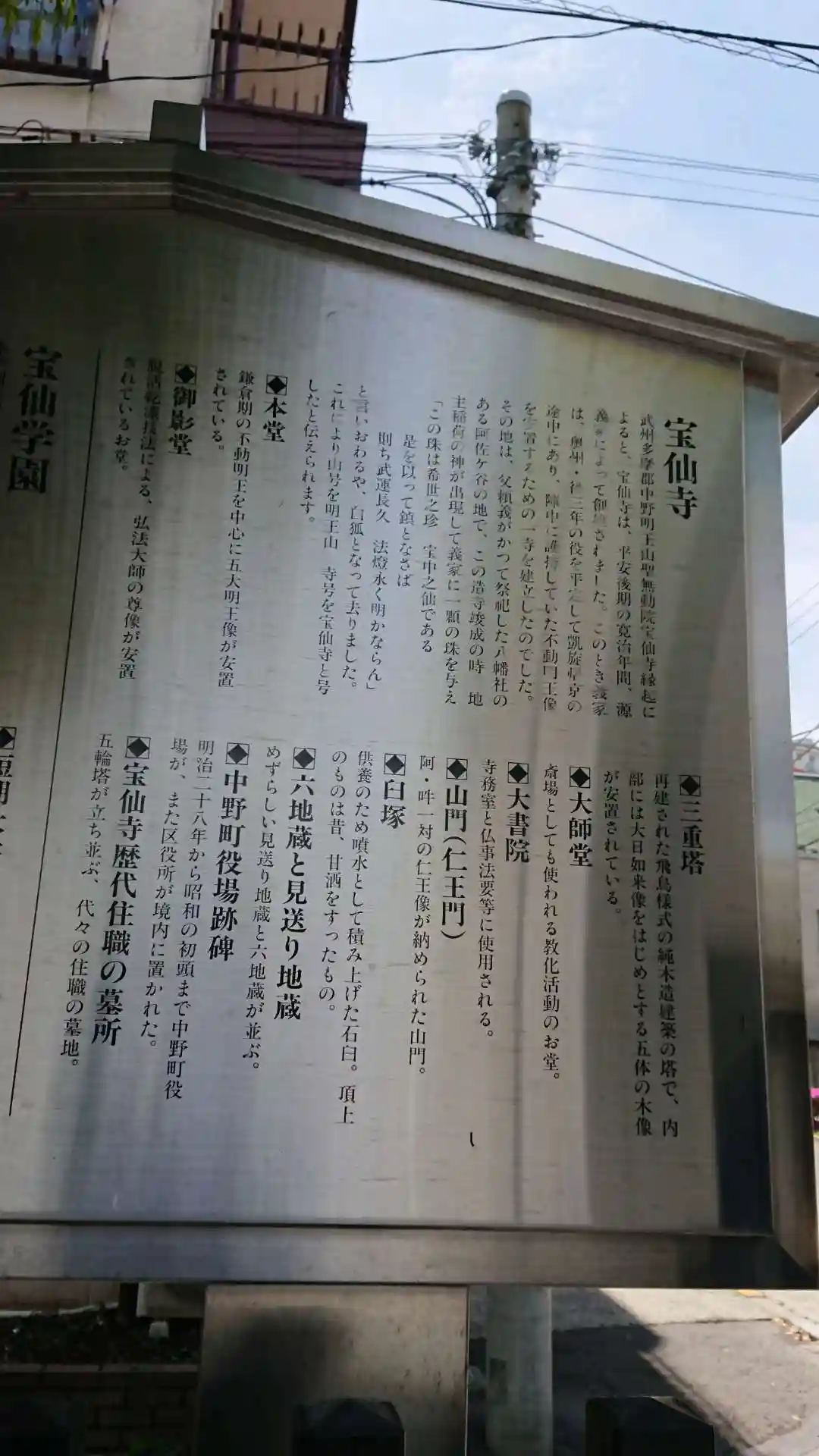 【武州多摩郡中野明王山聖無動院宝仙寺縁起】によると、宝仙寺は、平安後期…