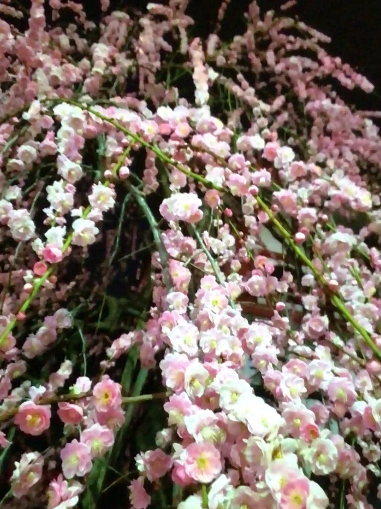 暗くて撮れないかな‥と思いましたが、山手通りの街灯のおかげで撮れましたが、街灯の反射なのか、お花の色がmixの様に写っていました。