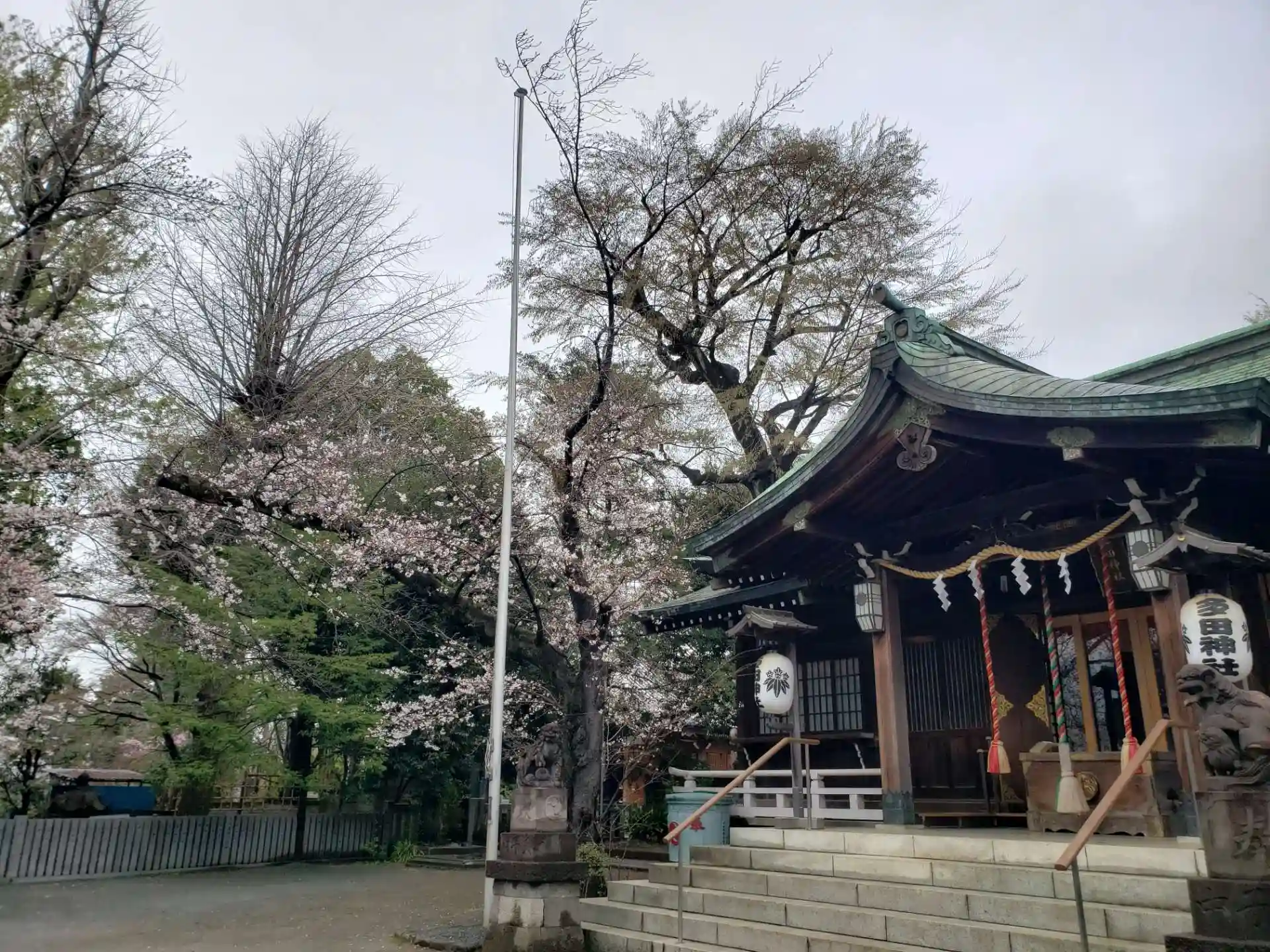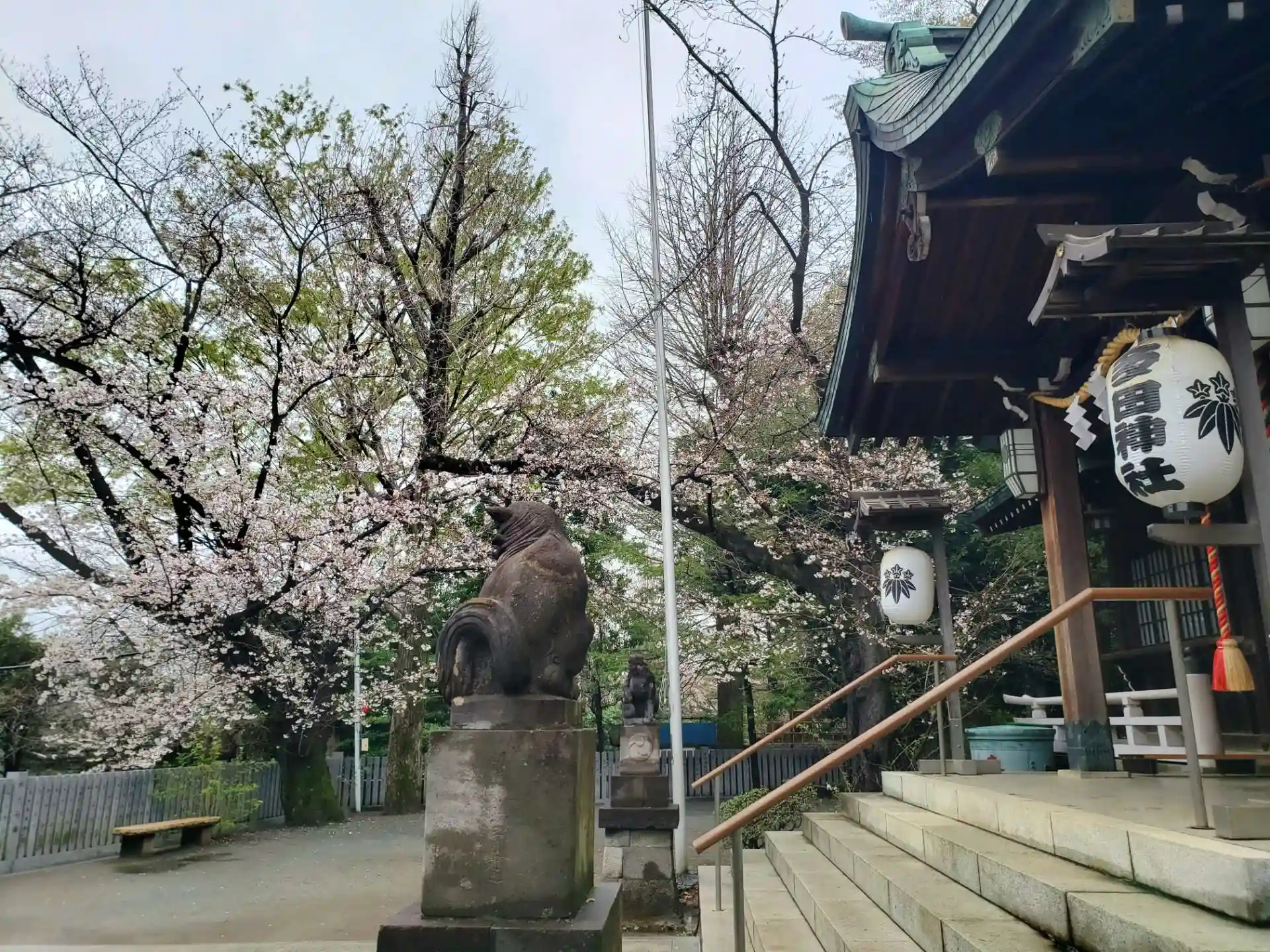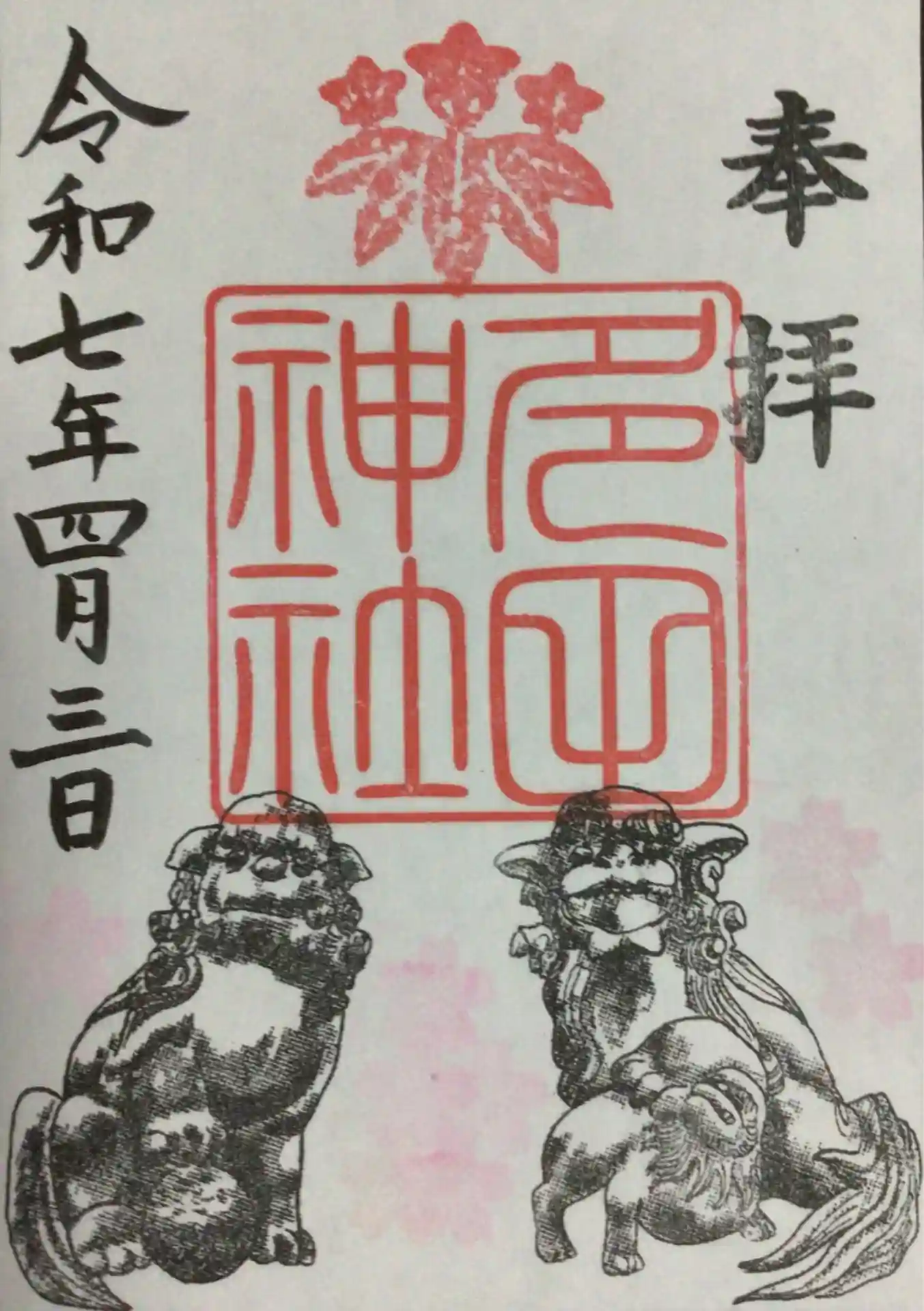 御朱印は通年書き置きのみですが、桜開花の時期は、狛犬さんの辺りに桜の印が薄く押されたものを頂けます。