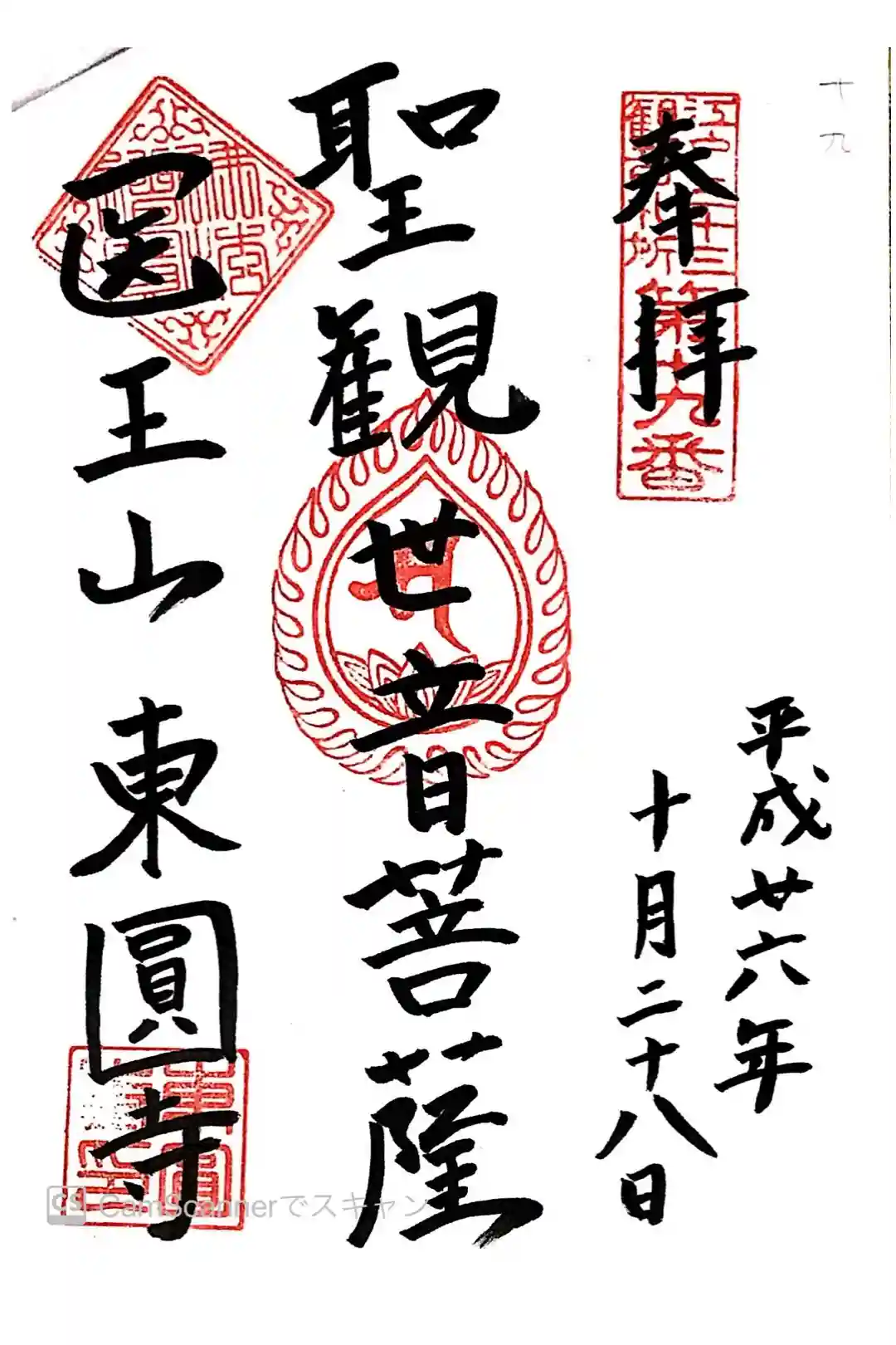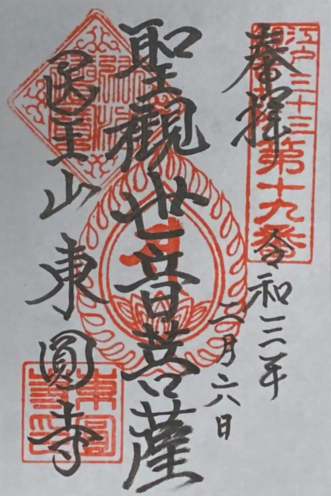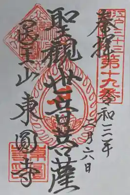 江戸三十三観音の19番札所、東円寺の聖観世音菩薩の御朱印。