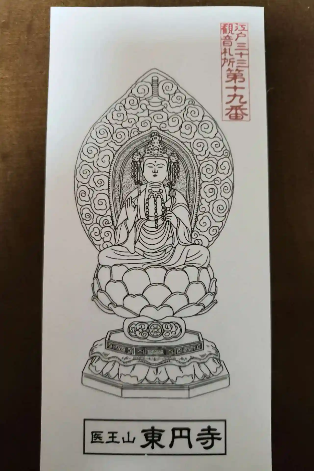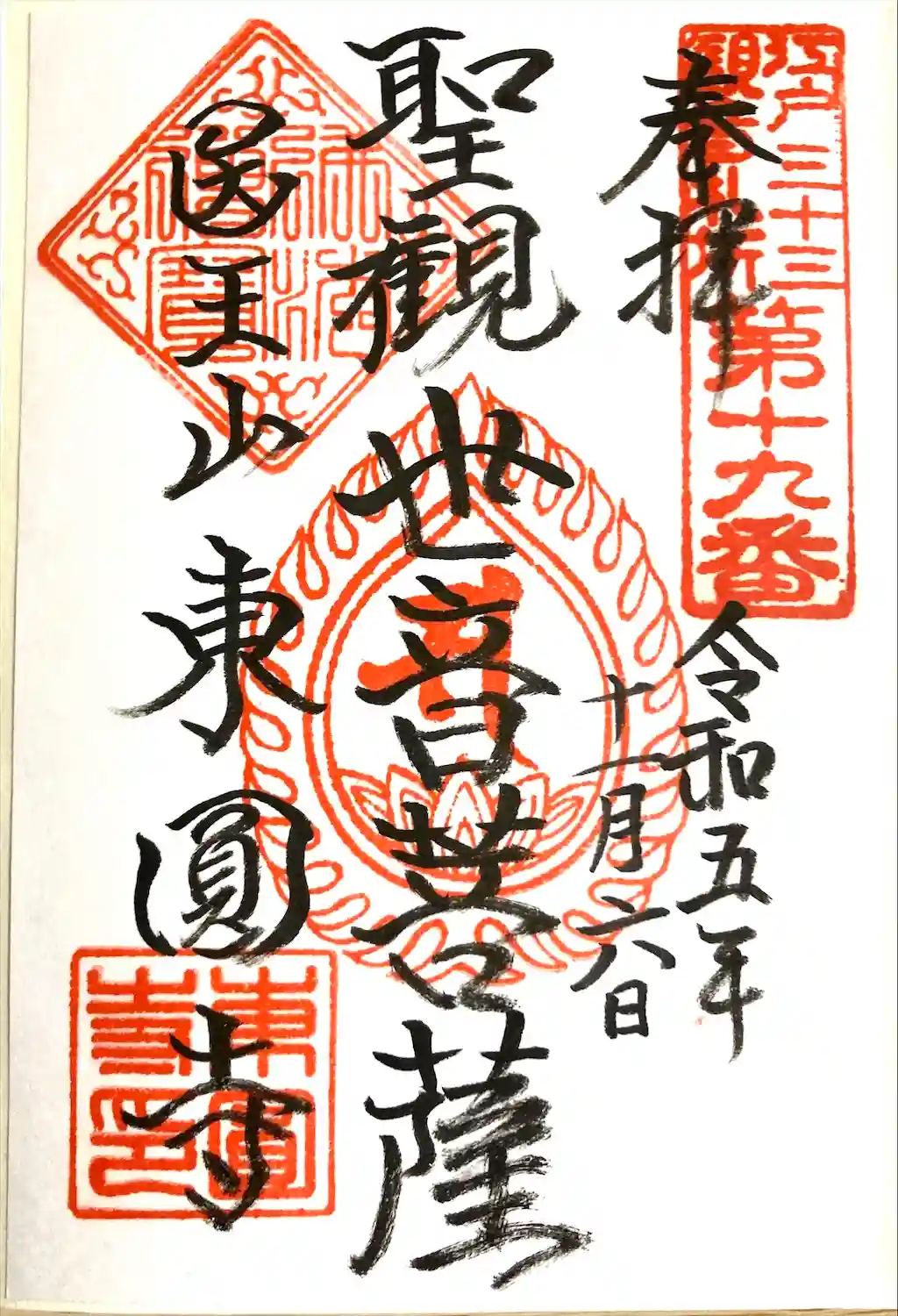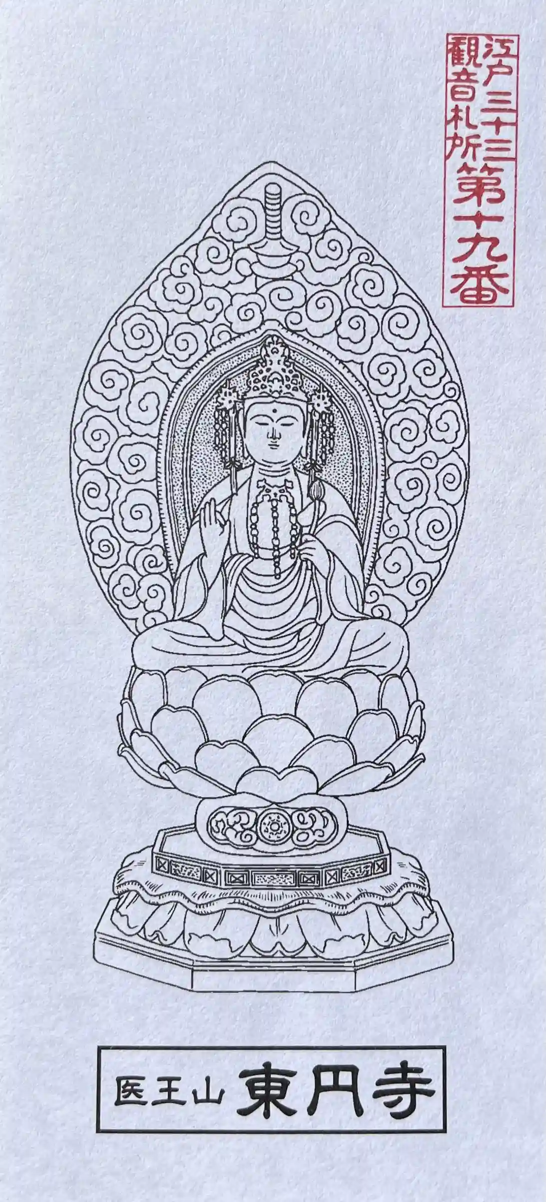 江戸三十三観音の19番札所、東円寺の聖観世音菩薩の御朱印。