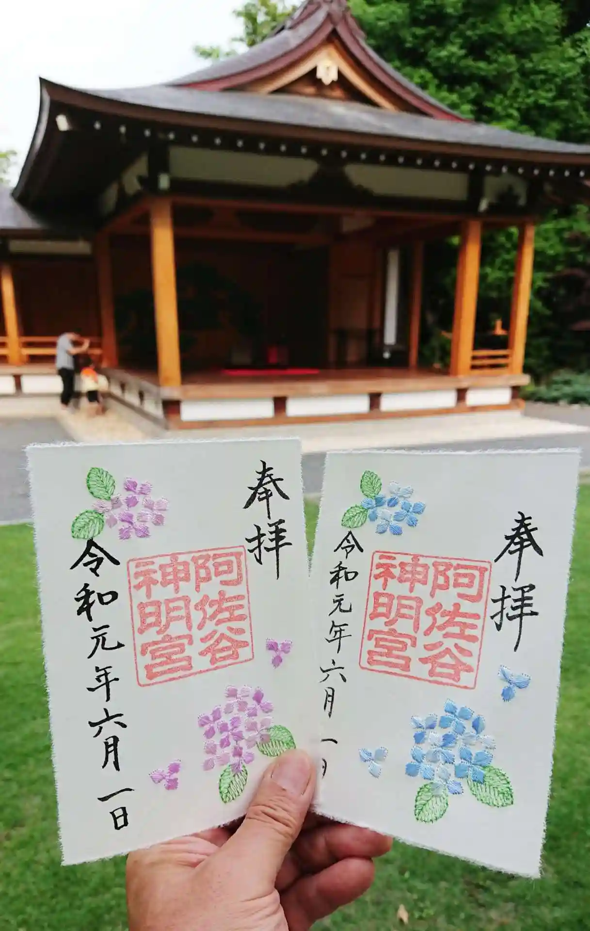 阿佐ヶ谷神明宮で6/1から頒布の紫陽花刺繍の御朱印を頂きて来ました。