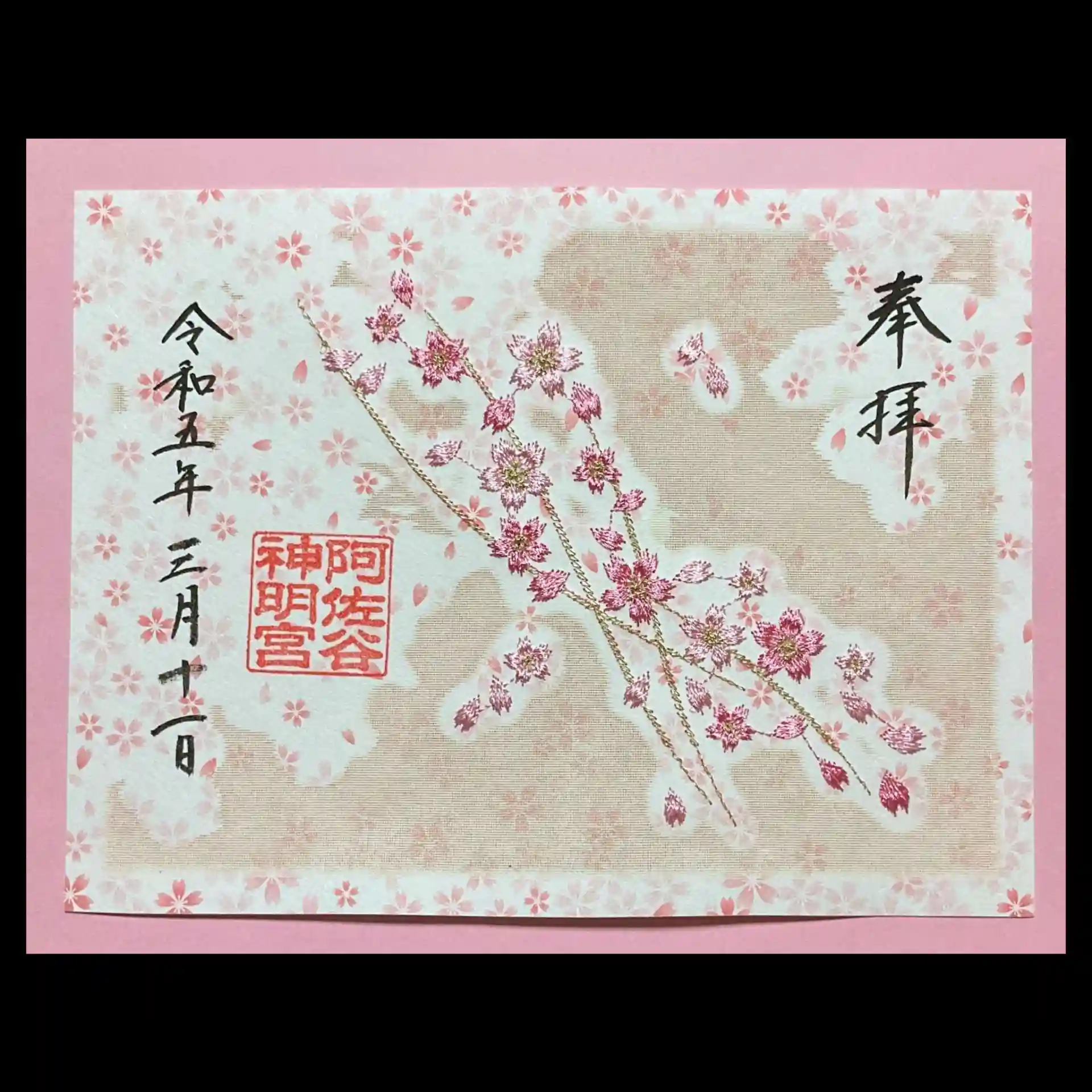 種類の異なる桜が咲いている御朱印です🌸