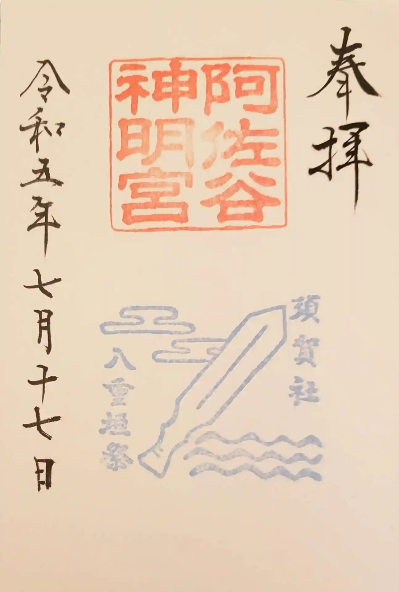 【令和5年7月17日、当宮摂社須賀社例祭「八重垣祭」を斎行いたします。これを記念して当日御朱印をお受けの方に「八重垣祭」の印を押させていただきます。※1日のみの限定朱印です】