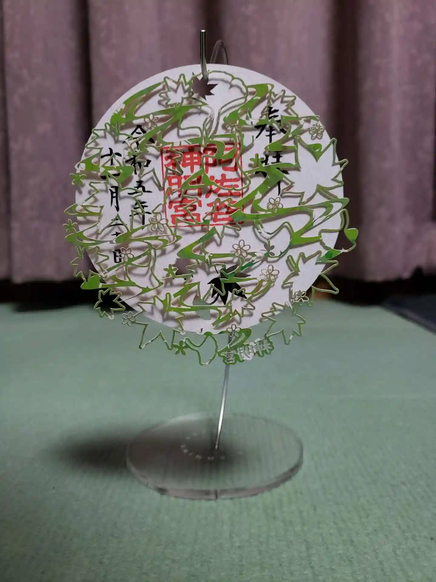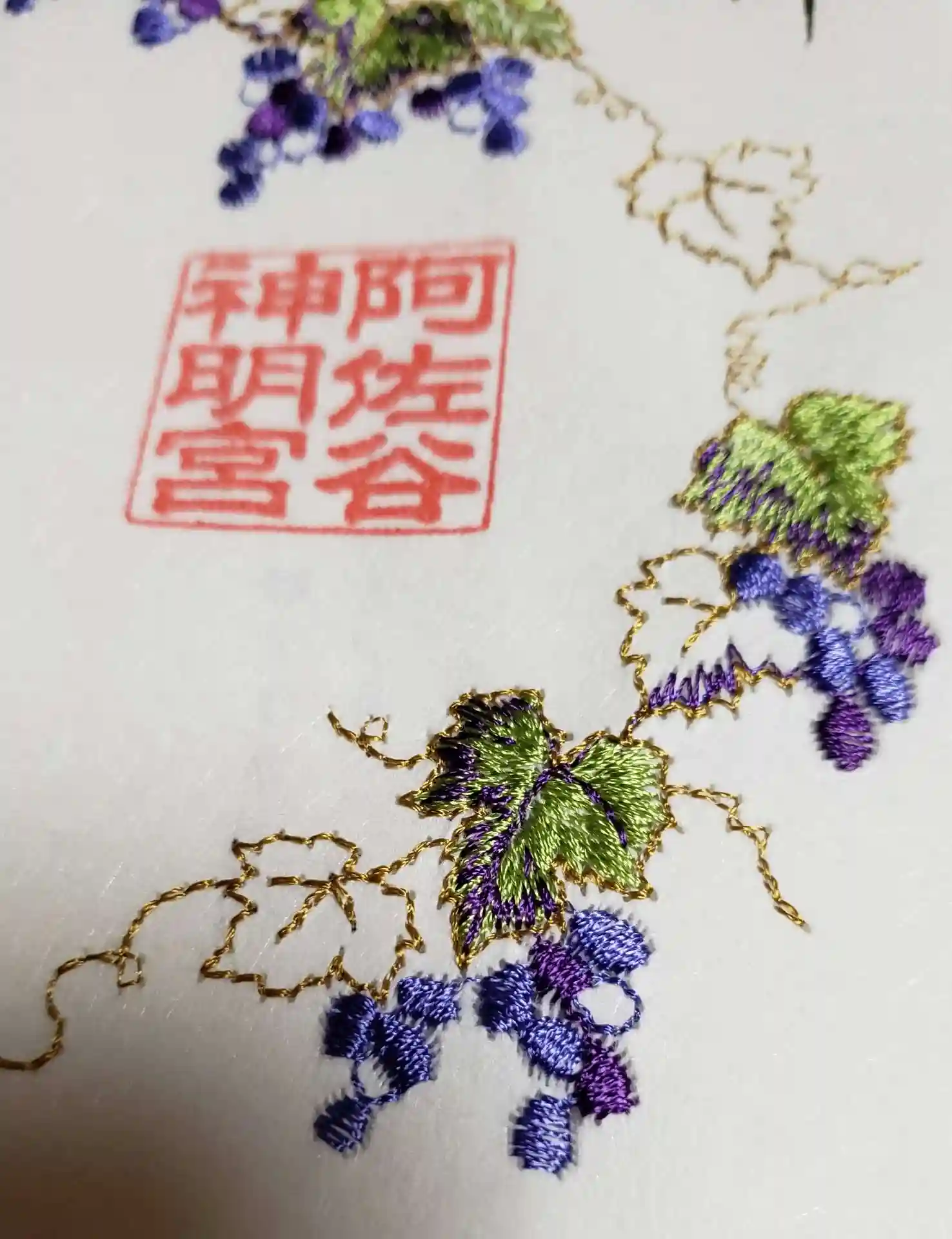 こちらにお参りをして、19日から頒布されている刺繍の大和がさね御朱印と、前回から新しい試みをされている、揺れて飾れる御朱印シリーズの新作をいただきました。リバーシブル⁉️です。