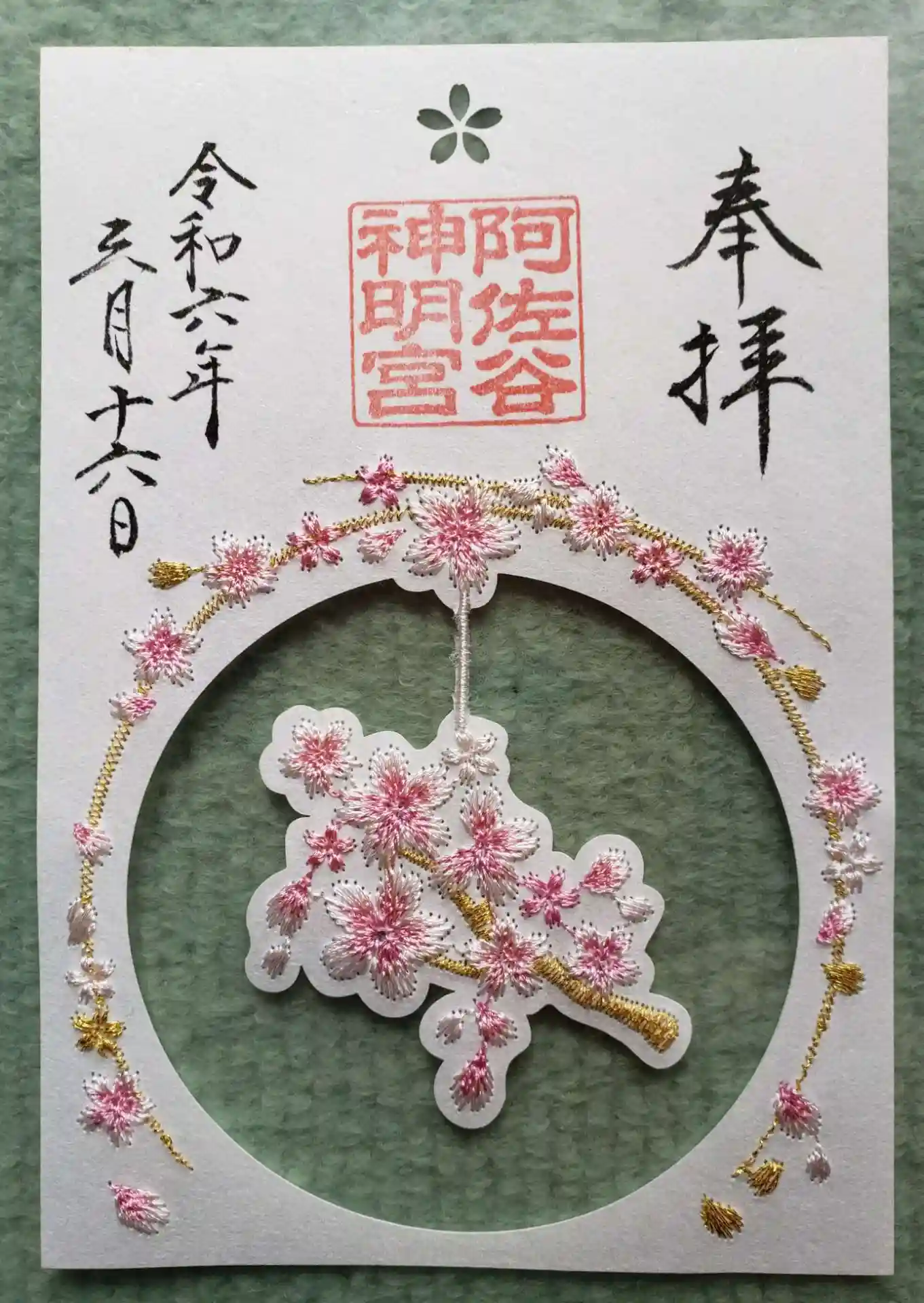 3/16~数量限定で頒布が始まった『桜の特別御朱印符』四種のうち、切り絵を除く三種類です。事前に社務所で郵送手続きしていたものが、昨日3/18に届きました。