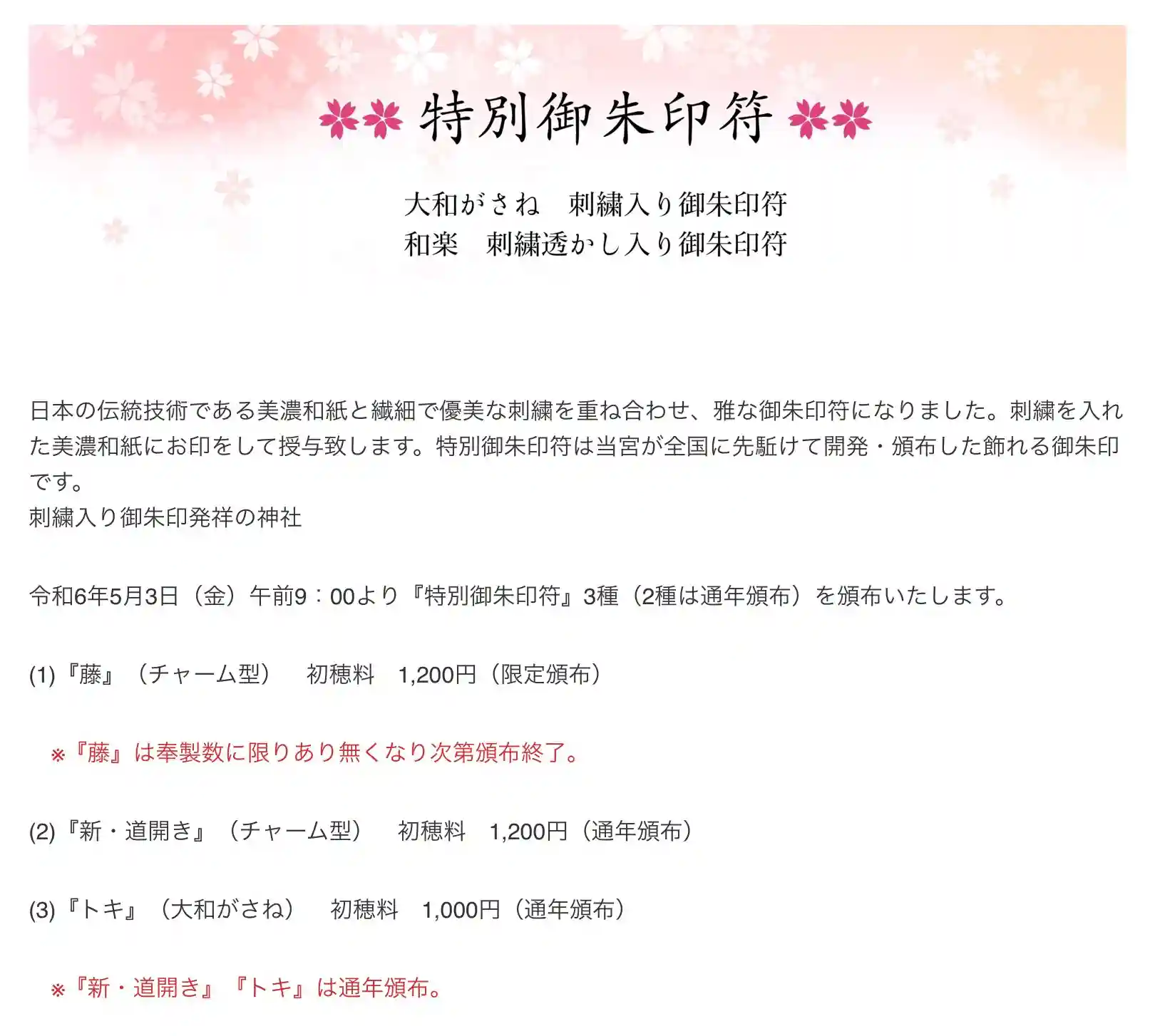 トキの大和がさねは、通年頒布なので、人気ありそうですね。