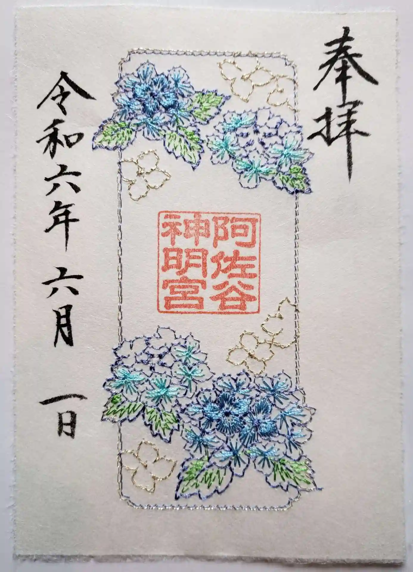 5/31の参拝時に郵送依頼してきた、6/1~頒布の紫陽花大和がさね、二種が届きました。