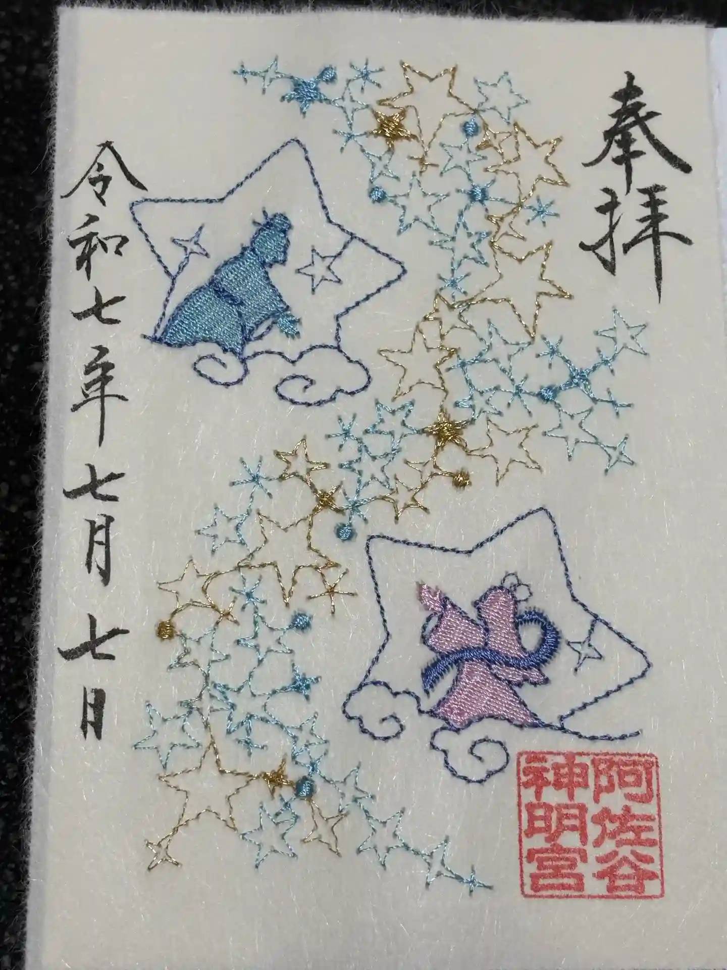 七夕の御朱印で4種類ありましたが、すでに2枚は売れ切れとのことでしたので他の2枚をいただいてきました。