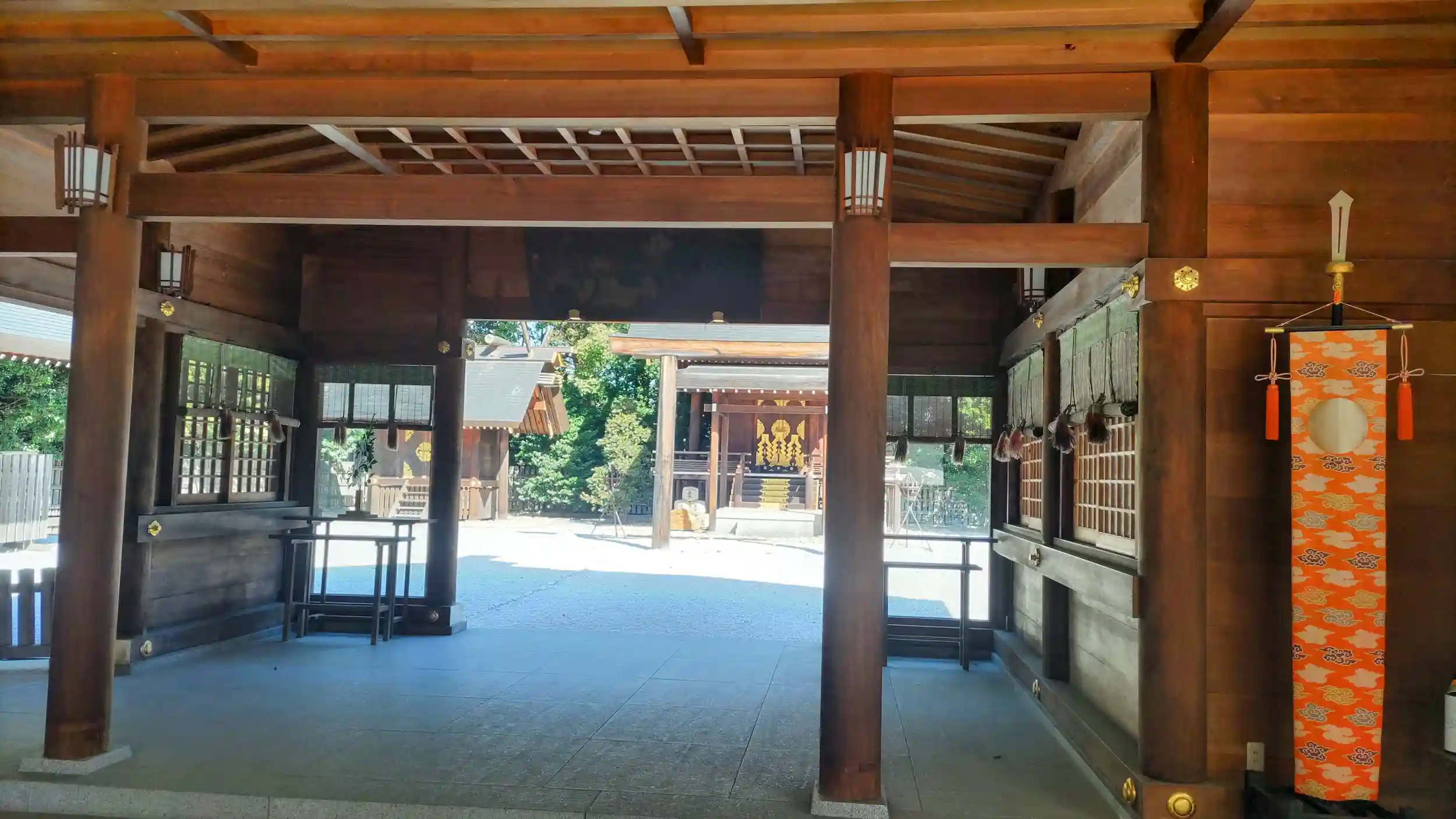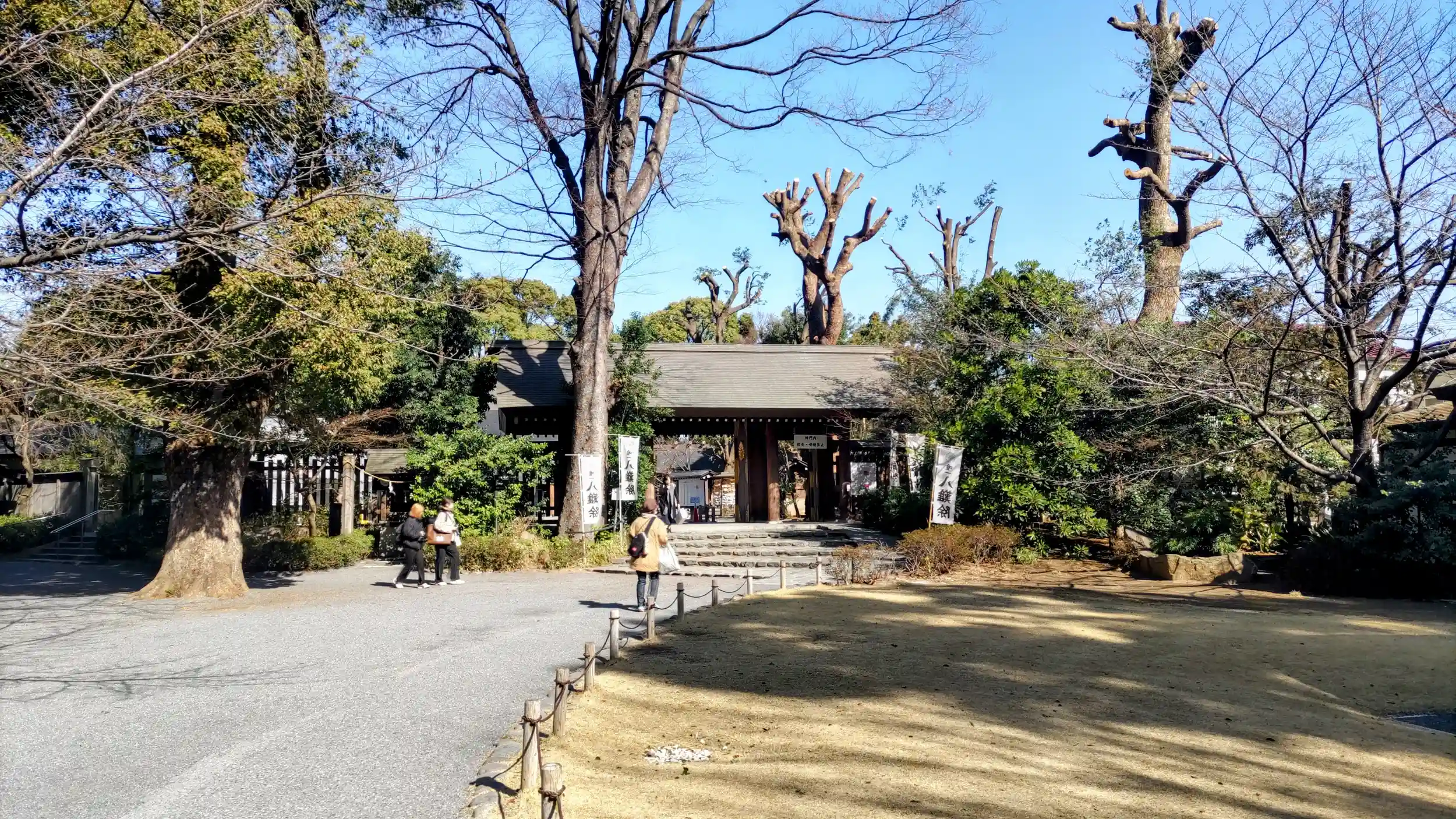 東京都内最大級の伊勢神宮勧請の神社とのこと。白い石を敷き詰めたなかに、中央に天照大御神をお祀りした本殿があり、左右の摂社には、右に月読命、左に須佐之男命がお祀りされています。