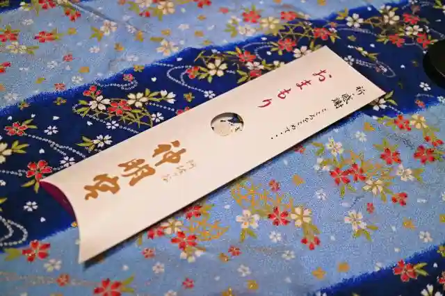 紙の御朱印はこんな袋に入れてくれます。硬い厚紙ではないのでカバンの中でクチャクチャにならないよう、のりと御朱印帳持参ですぐ貼ってしまうのが良さそうです。