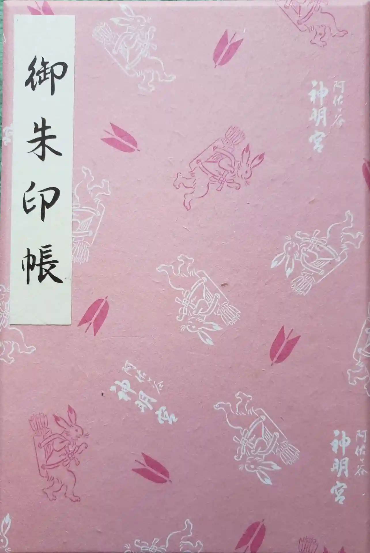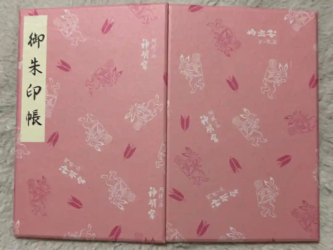 ご本殿をデザインした御朱印帳が3色、うさぎ柄の御朱印帳が3色あります。